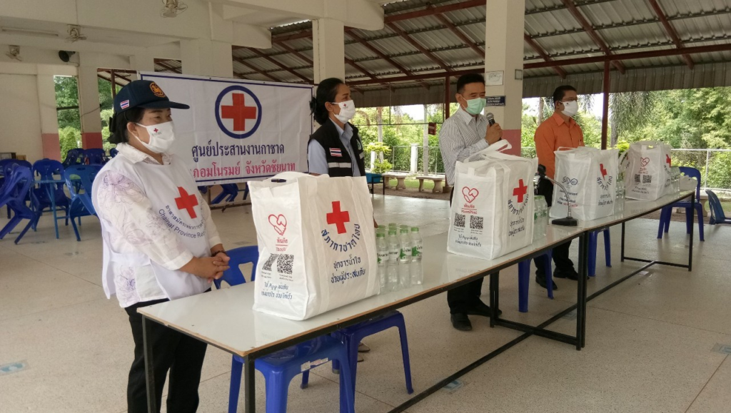 วันที่ 24 มิถุนายน 2563 นายรณภพ เหลืองไพโรจน์ ผู้ว่าราชการจังหวัดชัยนาท/นายกเหล่ากาชาดจังหวัดชัยนาท มอบหมายให้ นางบำเพ็ญ ศรีโสภา รองนายกเหล่ากาชาดจังหวัดชัยนาท คณะกรรมการและสมาชิกเหล่ากาชาดจังหวัดชัยนาท ส่งมอบชุดธารน้ำใจกู้ชีวิตฝ่าวิกฤตโควิด-19 จำนวน 468 ชุด พร้อมน้ำดื่ม มอบให้แก่ผู้ที่ได้รับผลกระทบ