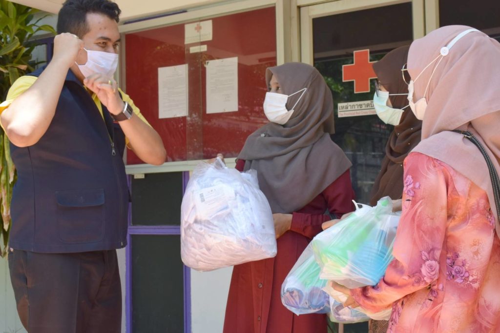 วันที่ 9 กรกฎาคม 2563 นางอนุรี วิศิษฎ์วงศ์ นายกเหล่ากาชาดจังหวัดปัตตานี มอบหมายให้นายกิตินัทธ์ จันทรโชติ ผู้ช่วยนายกเหล่ากาชาดจังหวัดปัตตานี มอบหน้ากากอนามัยแบบผ้า ตามโครงการจัดหาผ้าฝ้ายมัสลินที่มีตราสัญลักษณ์สภากาชาดไทย “โครงการสภากาชาดไทย ร่วมใจป้องกันภัย COVID-19 ด้วยหน้ากากอนามัยแบบผ้า” ป้องกันการ
