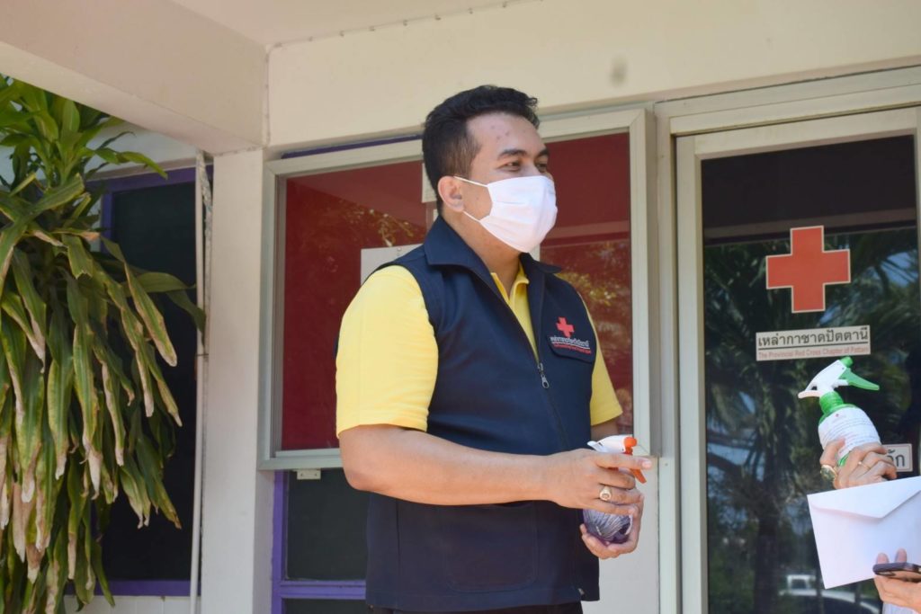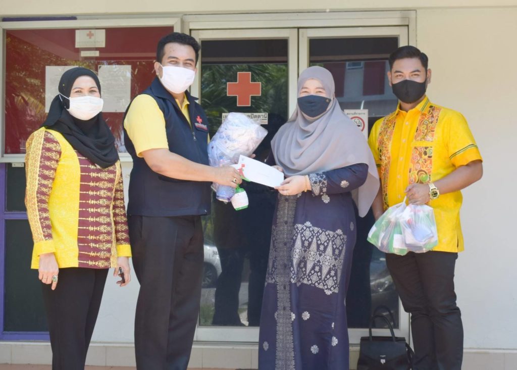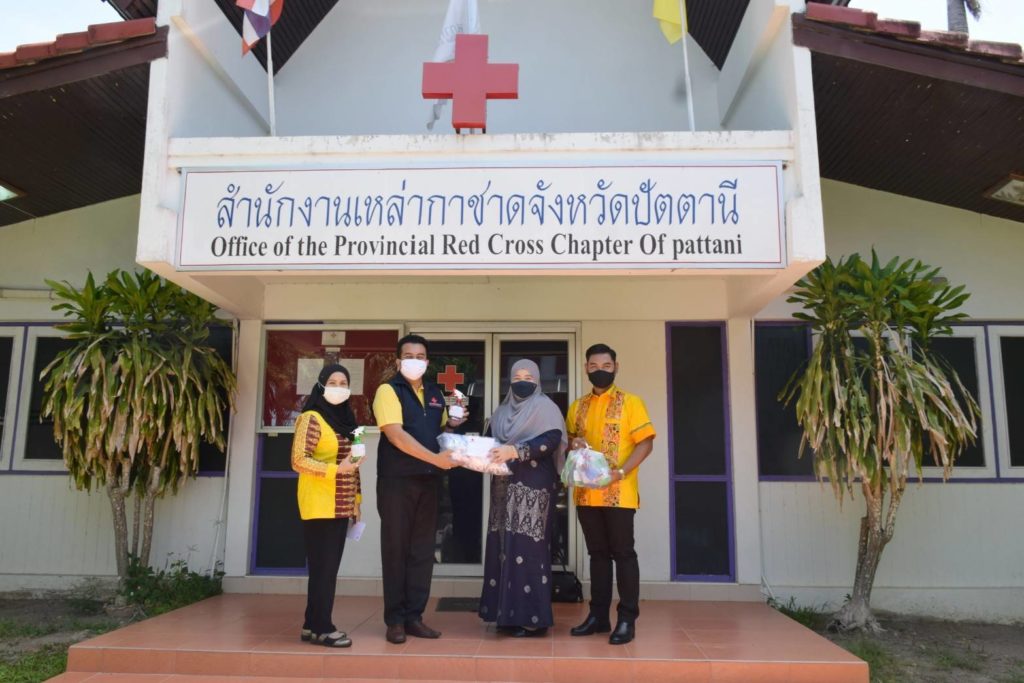 วันที่ 9 กรกฎาคม 2563 นางอนุรี วิศิษฎ์วงศ์ นายกเหล่ากาชาดจังหวัดปัตตานี มอบหมายให้ นายกิตินัทธ์ จันทรโชติ ผู้ช่วยนายกเหล่ากาชาดจังหวัดปัตตานี มอบผลิตภัณฑ์ทำความสะอาดจากแอลกอฮอล์ ชนิดเอทิลแอลกอฮอล์ 72% แบบสเปรย์ฉีด ขนาด 350มิลลิลิตร จำนวน 20 ขวด แก่เด็กนักเรียน, ครู และบุคลากรทางการศึกษาโรงเรียน