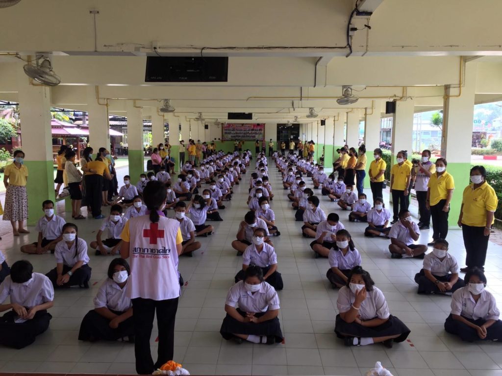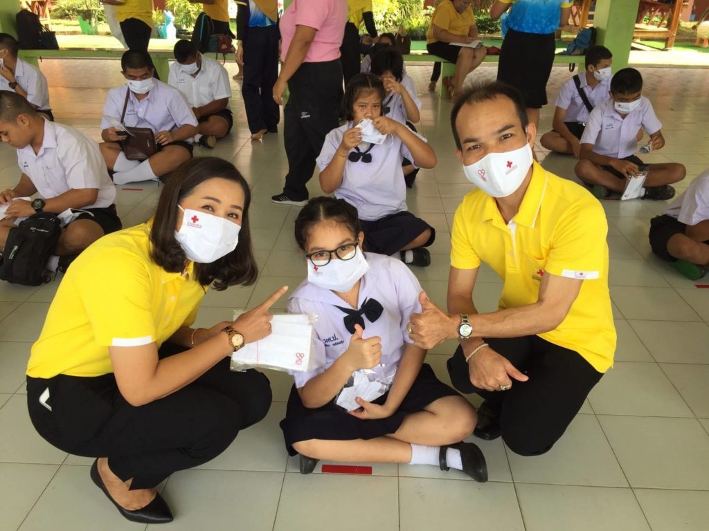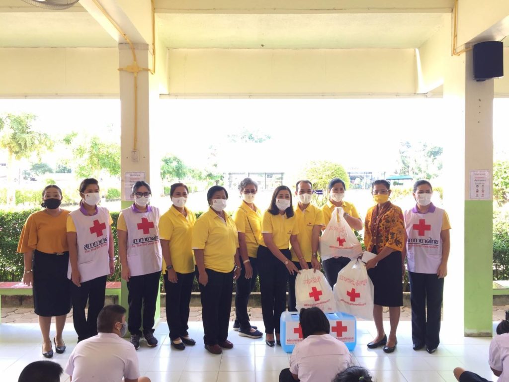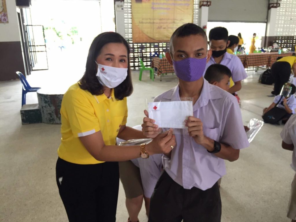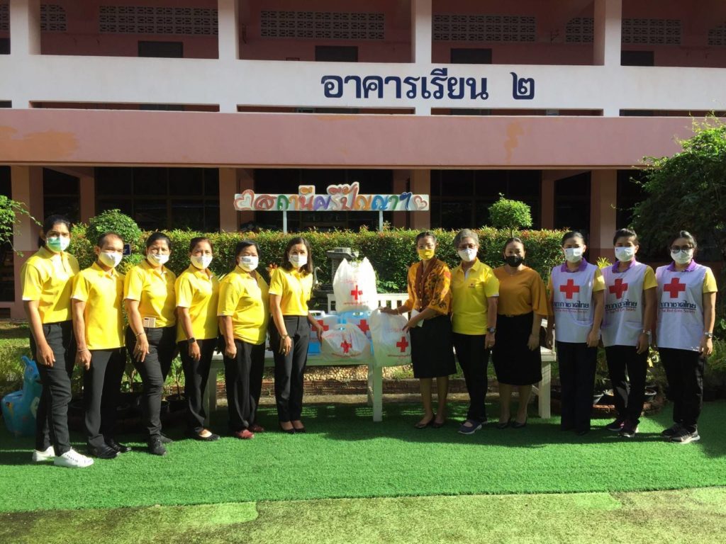 วันที่ 9 กรกฎาคม 2563 นางรัติยา พัฒกุล นายกเหล่ากาชาดจังหวัดนครศรีธรรมราช มอบหมายให้นางอุทัยวรรณ คงแก้ว รองนายกเหล่ากาชาดจังหวัดพร้อมด้วยคณะกรรมการเหล่ากาชาดจังหวัดนครศรีธรรมราชนำหน้ากากอนามัยที่มีตราสัญลักษณ์สภากาชาดไทย ที่ได้รับการสนับสนุนจากสำนักงานบรรเทาทุกข์และประชานามัยพิทักษ์ สภากาชาดไทย มอบให้แก่นักเรียนโรงเรียนนครศรีธรรมราชปัญญานุกูล จำนวน 386 คนๆ ละ 2 ชิ้น นักเรียนโรงเรียนโสตศึกษาจังหวัดนครศรีธรรมราช จำนวน 163 คน ๆละ 2 ชิ้น นักเรียนโรงเรียนราชประชานุเคราะห์ 19 จังหวัดนครศรีธรรมราช จำนวน 494 คน ๆละ 2 ชิ้น และสำหรับคนพิการทางร่างกายและการเคลื่อนของจังหวัดนครศรีธรรมราช จำนวน 89 คน ๆละ 2 ชิ้น รวมทั้งสิ้นจำนวน 2,264 ชิ้น เพื่อป้องกันการแพร่ระบาดของเชื้อโรคโคโรนา 2019 ณ พื้นที่อำเภอทุ่งสง จังหวัดนครศรีธรรมราช พร้อมด้วยมอบแอลกอฮอล์ให้กับโรงเรียนนครศรีธรรมราชปัญญานุกูล จำนวน 2 แกลอน,โรงเรียนโสตศึกษาจังหวัดนครศรีธรรมราช จำนวน 1 แกลลอน โรงเรียนราชประชานุเคราะห์ 19 จังหวัดนครศรีธรรมราช จำนวน 2 แกลลอน,สำหรับคนพิการทางการทางร่างกายและการเคลื่อนไหวของจังหวัดนครศรีธรรมราช จำนวน 1 แกลลอน