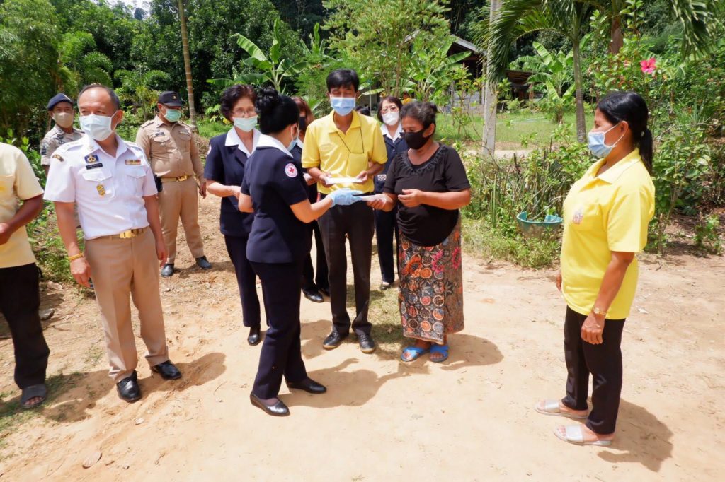 คือ ราย นางสุนีย์ นบนอบ อายุ 59 ปี บ้านเลขที่ 120 หมู่ที่ 4 ตำบลพนม พร้อมกันนี้ เหล่ากาชาดจังหวัดสุราษฎร์ธานีได้เเจกหน้ากากอนามัยแบบผ้าที่มีตราสัญลักษณ์ สภากาชาดไทยให้กับประชาชนในพื้นที่ เพื่อป้องกันการแพร่ระบาดของเชื้อไวรัสโคโรนา 2019 ด้วย