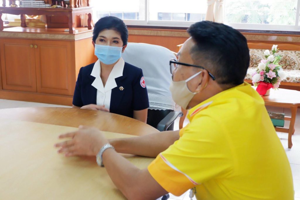 วันที่ 21 กรกฎาคม 2563 นางอุรสา จินโต นายกเหล่ากาชาดจังหวัดสุราษฎร์ธานีพร้อมด้วยที่ปรึกษาฯ และสมาชิกเหล่ากาชาดจังหวัดสุราษฎร์ธานีได้ไปมอบหน้ากากอนามัย