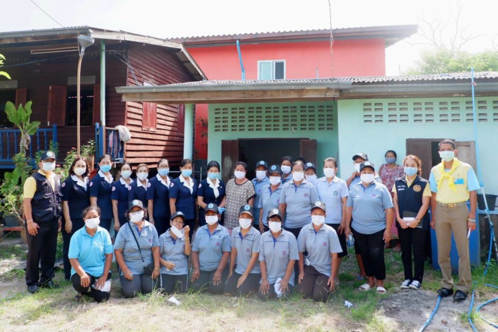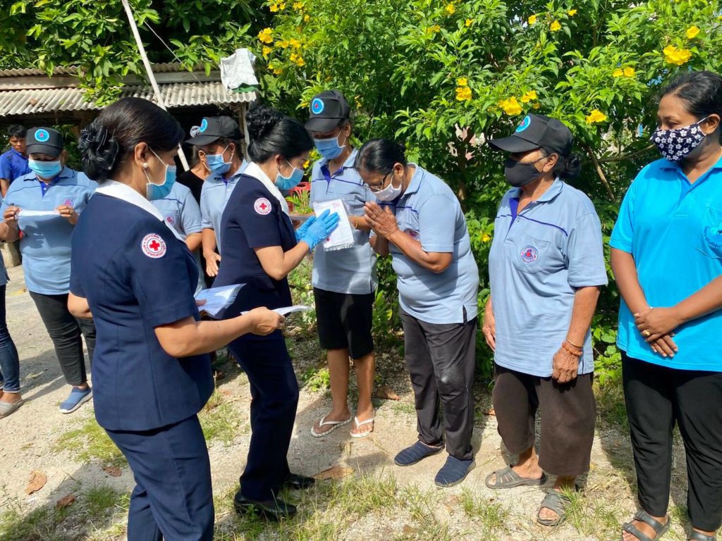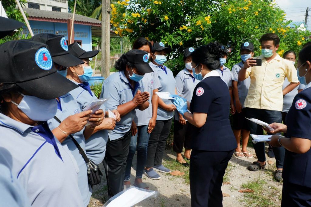 พร้อมกันนี้ เหล่ากาชาดจังหวัดสุราษฎร์ธานีได้เเจกหน้ากากอนามัยแบบผ้าที่มีตราสัญลักษณ์ สภากาชาดไทยให้กับประชาชนและ อสม. ในพื้นที่เพื่อป้องกันการแพร่ระบาด