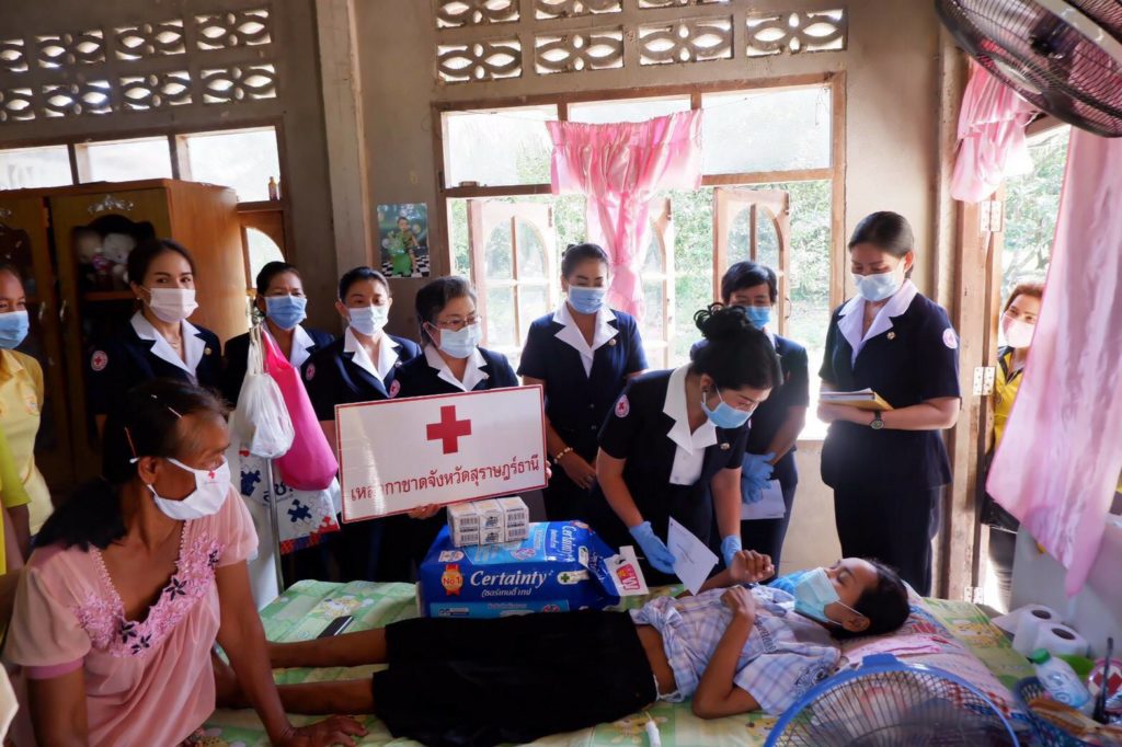 วันที่ 23 กรกฎาคม 2563 นางอุรสา จินโต นายกเหล่ากาชาดจังหวัดสุราษฎร์ธานี พร้อมด้วยกรรมการฯ เหรัญญิกฯและสมาชิกเหล่ากาชาดจังหวัดสุราษฎร์ธานี นายกัมปนาท กลิ่นเสาวคนธ์ นายอำเภอบ้านนาสารผู้กำกับการสถานีตำรวจภูธรอำเภอบ้านนาสารนายกเทศมนตรีเทศบาลเมืองนาสารผอ.รพ.สต. ปลัดอำเภอ ปลัดเทศบาล รองปลัดเทศบาลนักวิชาการสาธารณสุขชำนาญการพัฒนาชุมชน อสม. และ อส.ร่วมลงพื้นที่อำเภอบ้านนาสารเพื่อเยี่ยมผู้ป่วยติดเตียง จำนวน 2 ราย ดังนี้