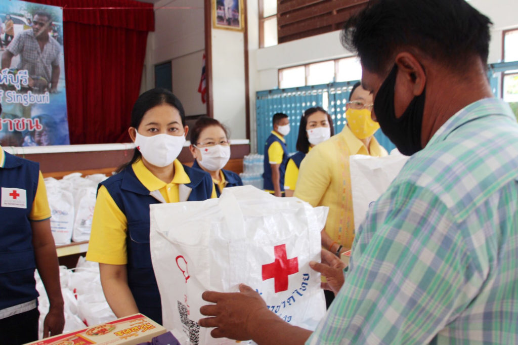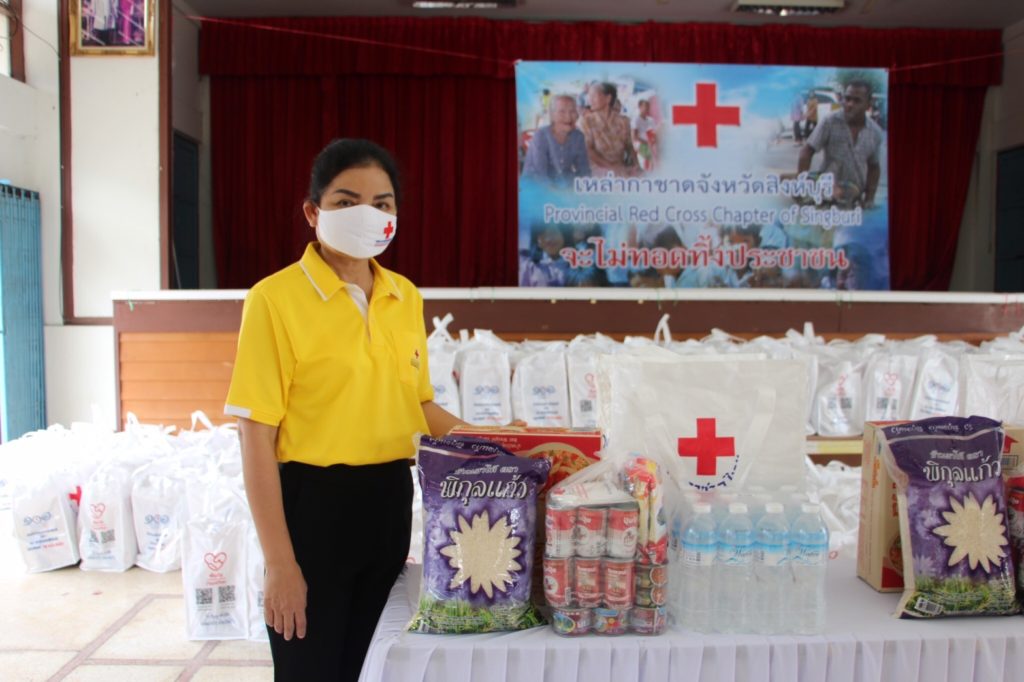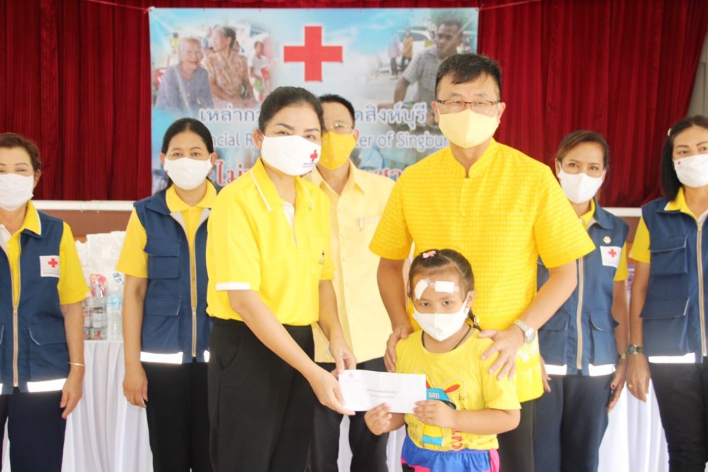 วันที่ 25 กรกฎาคม 2563 นายชำนาญวิทย์ เตรัตน์ ผู้ว่าราชการจังหวัดสิงห์บุรี ประธานที่ปรึกษาคณะกรรมการเหล่ากาชาดจังหวัดสิงห์บุรีและนางชุลีพร เตรัตน์ นายกเหล่ากาชาดจังหวัดสิงห์บุรี พร้อมด้วยนางเนตรชนก พุ่มน้อย รองนายกเหล่ากาชาดจังหวัดสิงห์บุรี นายสมยศ พุ่มน้อย ปลัดจังหวัดสิงห์บุรี/เลขานุการเหล่ากาชาดจังหวัดสิงห์บุรีและคณะกรรมการเหล่ากาชาดจังหวัดสิงห์บุรี มอบชุดธารน้ำใจ สภากาชาดไทย ให้แก่ผู้ประสบวาตภัยในพื้นที่อำเภอท่าช้าง จำนวน 151 ชุด โดยมอบให้ผู้ประสบวาตภัย จำนวน 30 ชุดและสำหรับส่วนที่เหลือ จำนวน 121 ชุด มอบให้กำนัน ผู้ใหญ่บ้าน เป็นผู้แทนของเหล่ากาชาดจังหวัดสิงห์บุรี นำไปมอบให้กับผู้ประสบวาตภัย เมื่อวันที่ 19 กรกฎาคม 2563