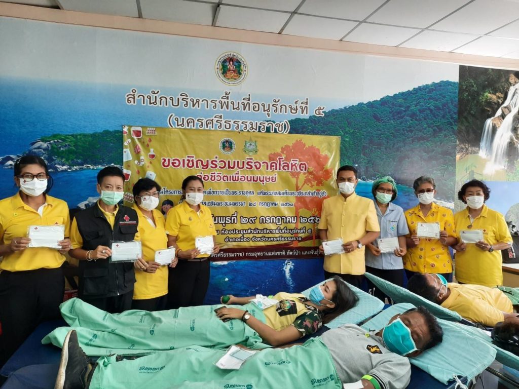 วันที่ 29 กรกฎาคม 2563 นางรัติยา พัฒกุลนายกเหล่ากาชาดจังหวัดนครศรีธรรมราชมอบหมายให้คณะกรรมการเหล่ากาชาดจังหวัดนครศรีธรรมราชออกหน่วยรับบริจาคโลหิต ณ สนง.ป่าไม้จังหวัดนครศรีธรรมราช อำเภอเมือง จังหวัดนครศรีธรรมราชได้โลหิตจำนวน 86 ยูนิต พร้อมมอบแอลกอฮอล์และหน้ากากอนามัยผ้าให้กับผู้บริจาคโลหิต จำนวน 100 ชิ้น มีผู้แสดงความจำนงบริจาคดวงตา จำนวน 7 ราย และอวัยวะ จำนวน 3 ราย