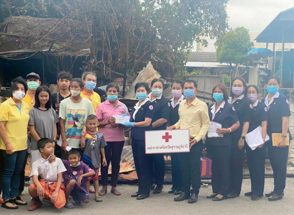 วันที่ 29 กรกฎาคม 2563 นางอุรสา จินโต นายกเหล่ากาชาดจังหวัดสุราษฎร์ธานี พร้อมด้วยที่ปรึกษาฯ กรรมการฯและสมาชิกเหล่ากาชาดจังหวัดสุราษฎร์ธานีนายนิมิต วงษ์จินดา ปลัดอำเภอหัวหน้ากลุ่มงานบริหารงานปกครองอำเภอเมืองสุราษฎร์ธานีร่วมลงพื้นที่อำเภอเมืองสุราษฎร์ธานีเพื่อเยี่ยมครอบครัว นางอรัญญา พราหมณ์น้อย อายุ 64 ปี บ้านเลขที่ 59 ตำบลตลาด อำเภอเมือง จังหวัดสุราษฎร์ธานีทั้งนี้ เมื่อวันจันทร์ที่ 27 กรกฎาคม 2563 เวลาประมาณ 18:00 น.ได้เกิดเหตุเพลิงไหม้บ้านพักอาศัยของนางอรัญญาฯ ส่งผลให้บ้านได้รับความเสียหายทั้งหลังสำหรับสาเหตุนั้น คาดว่าเกิดจากไฟฟ้าลัดวงจร ในการนี้ เหล่ากาชาดจังหวัดสุราษฎร์ธานีได้มอบเงิน จำนวน 10,000 บาทเพื่อช่วยเหลือ