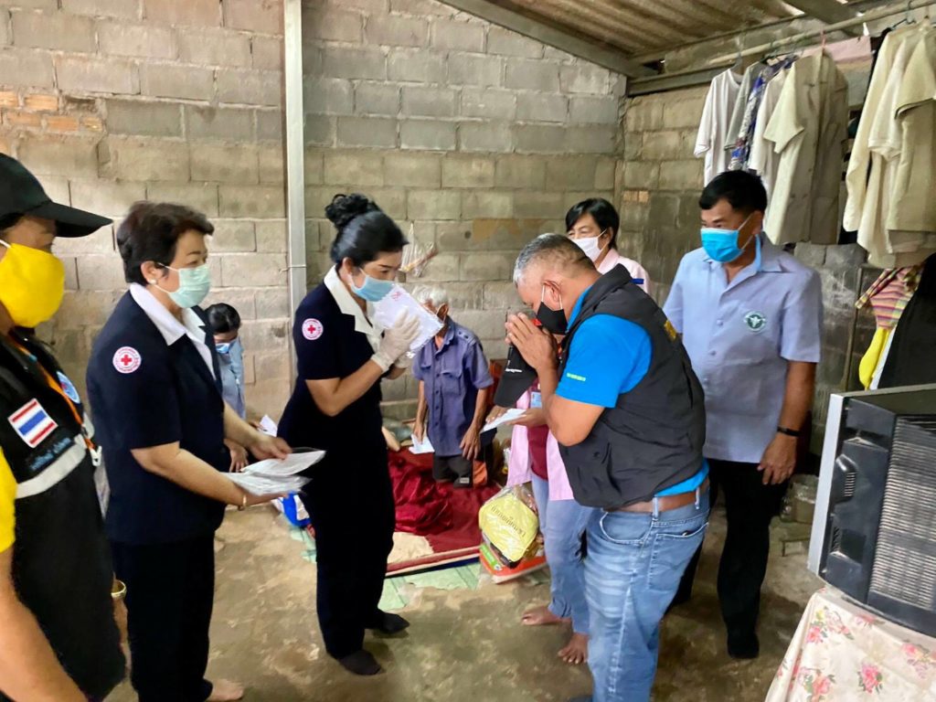 ในการนี้ เหล่ากาชาดจังหวัดสุราษฎร์ธานีได้มอบผ้าอ้อมสำเร็จรูปสำหรับผู้ใหญ่ให้รายละ 1 แพ็คและมอบเงินให้รายละ 3,000 บาทเพื่อเป็นขวัญกำลังใจและบรรเทาทุกข์