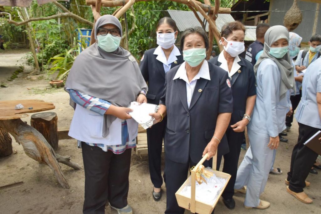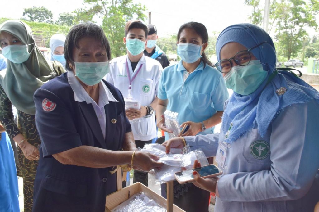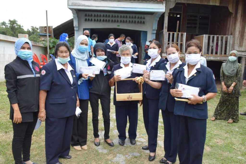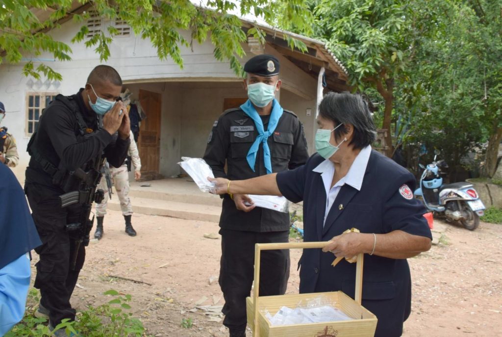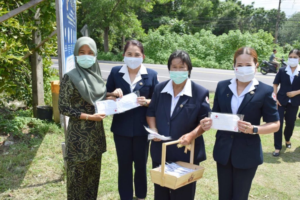 วันที่ 11 สิงหาคม 2563 นางอนุรี วิศิษฎ์วงศ์ นายกเหล่ากาชาดจังหวัดปัตตานี พร้อมด้วยคณะกรรมการและสมาชิกเหล่ากาชาดจังหวัดปัตตานี เยี่ยมให้กำลังใจ พร้อมมอบหน้ากากอนามัยแบบผ้า ตามโครงการจัดหาผ้าฝ้ายมัสลินที่มีตราสัญลักษณ์สภากาชาดไทย “โครงการสภากาชาดไทย ร่วมใจป้องกันภัย COVID-19 ด้วยหน้ากากอนามัยแบบผ้า” ป้องกันการแพร่ระบาดของเชื้อไวรัสโคโรนา Coronavirus (COVID-19) ตามรูปแบบที่สภากาชาดไทยกำหนด จำนวน 200 ชิ้น เพื่อสนับสนุนการปฏิบัติภารกิจป้องกันการ