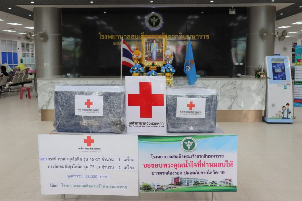 กระติกขนส่งถุงโลหิต มูลค่า 28,000 บาท ให้แก่โรงพยาบาลสมเด็จพระเจ้าตากสินมหาราช โดยมีผู้อำนวยการโรงพยาบาลสมเด็จพระเจ้าตากสินมหาราช เป็นผู้รับมอบ