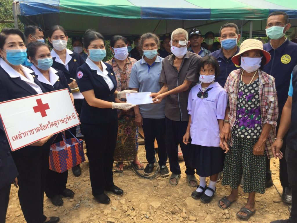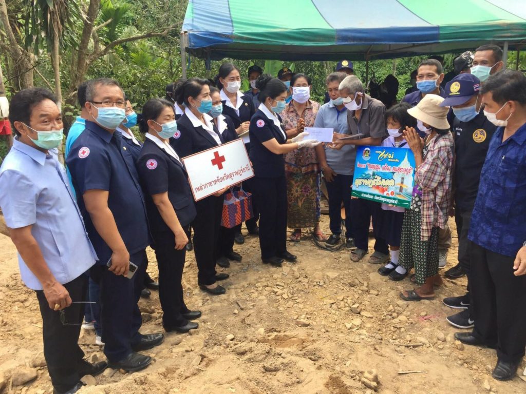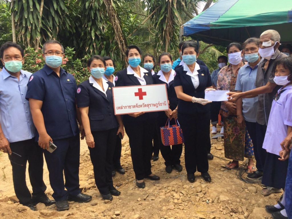 และจะหาแนวทางช่วยเหลือเพิ่มเติมต่อไป ในการนี้ เหล่ากาชาดจังหวัดสุราษฎร์ธานีได้มอบเงินช่วยเหลือ ให้จำนวน 3,000 บาทเพื่อเป็นขวัญกำลังใจและบรรเทาทุกข์ในเบื้องต้นด้วย พร้อมนี้เหล่ากาชาดจังหวัดสุราษฎร์ธานีได้แจกหน้ากากอนามัยแบบผ้าที่มีตราสัญลักษณ์ สภากาชาดไทย ให้ประชาชนในพื้นที่เพื่อป้องกันการแพร่ระบาดของเชื้อไวรัสโคโรนา 2019 ด้วย