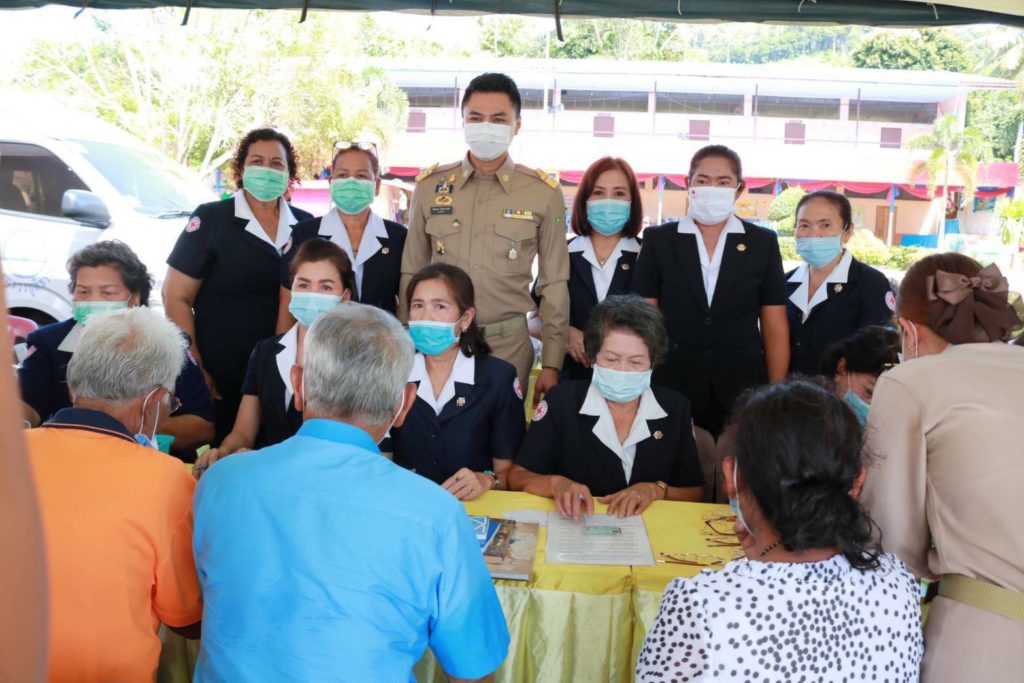และมอบหน้ากากอนามัยแบบผ้าที่มีตราสัญลักษณ์ สภากาชาดไทย จำนวน 1,000 ชิ้นให้กับประชาชนและ อสม. ในพื้นที่เพื่อป้องกันการแพร่ระบาดของเชื้อไวรัสโคโรนา