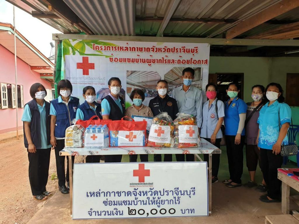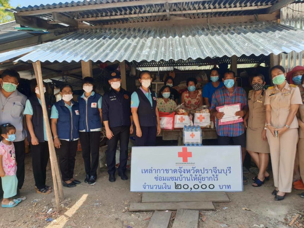 ในวันนี้ เหล่ากาชาดจังหวัดปราจีนบุรี ได้มอบเครื่องอุปโภค-บริโภคให้รายละ 2 ชุด น้ำดื่มรายละ 2 แพ็ค ชุดผ้าปูที่นอนรายละ 1 ชุด ผ้าห่มรายละ 1 ผืน และหน้ากากอนามัย