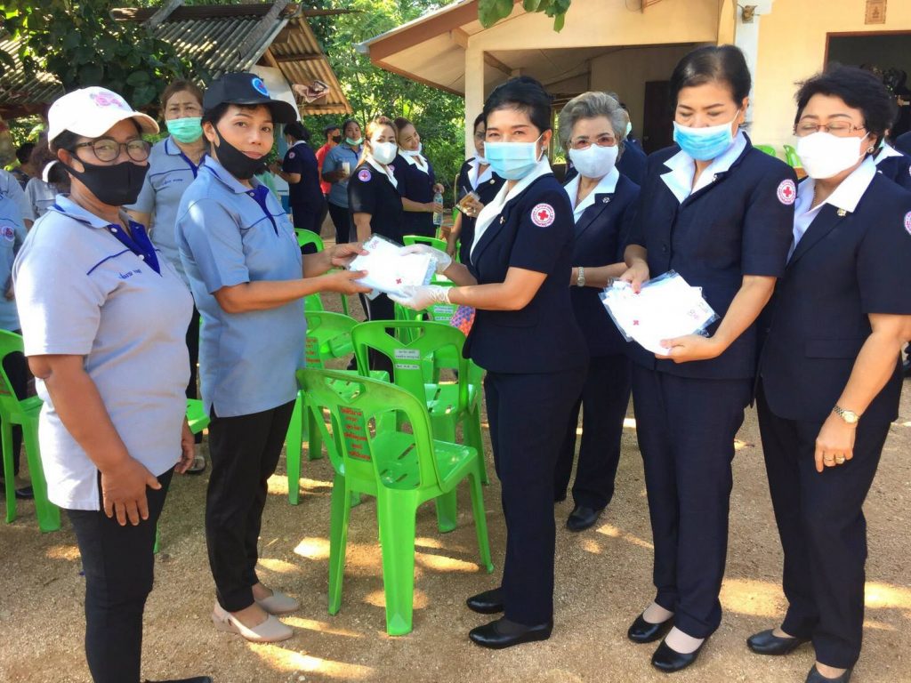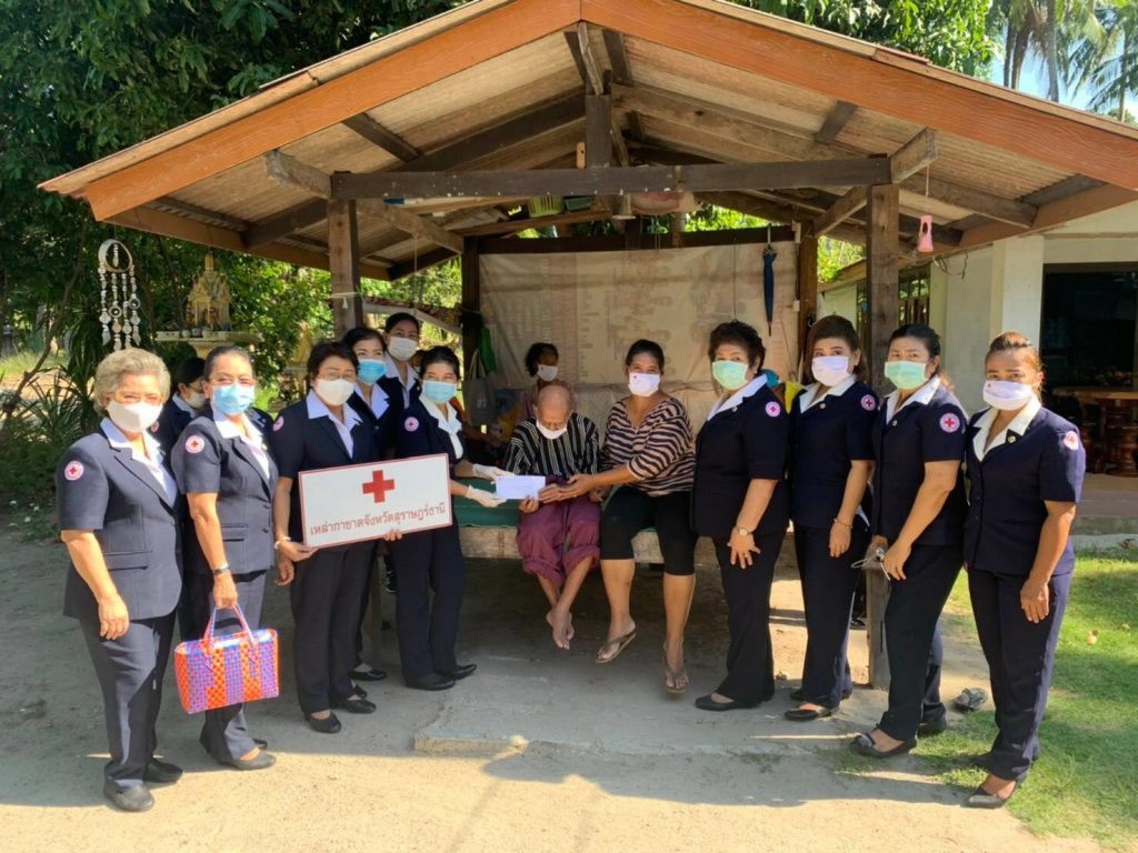 ในการนี้ เหล่ากาชาดจังหวัดสุราษฎร์ธานีได้มอบเงิน ให้รายละ 3,000 บาทเพื่อเป็นขวัญกำลังใจและบรรเทาทุกข์ในเบื้องต้น พร้อมมอบหน้ากากอนามัยแบบผ้าที่มีตราสัญลักษณ์ สภากาชาดไทยให้กับ อสม. และประชาชนในพื้นที่เพื่อป้องกันการแพร่ระบาด ของโรคไวรัส โควิด 2019 ด้วย