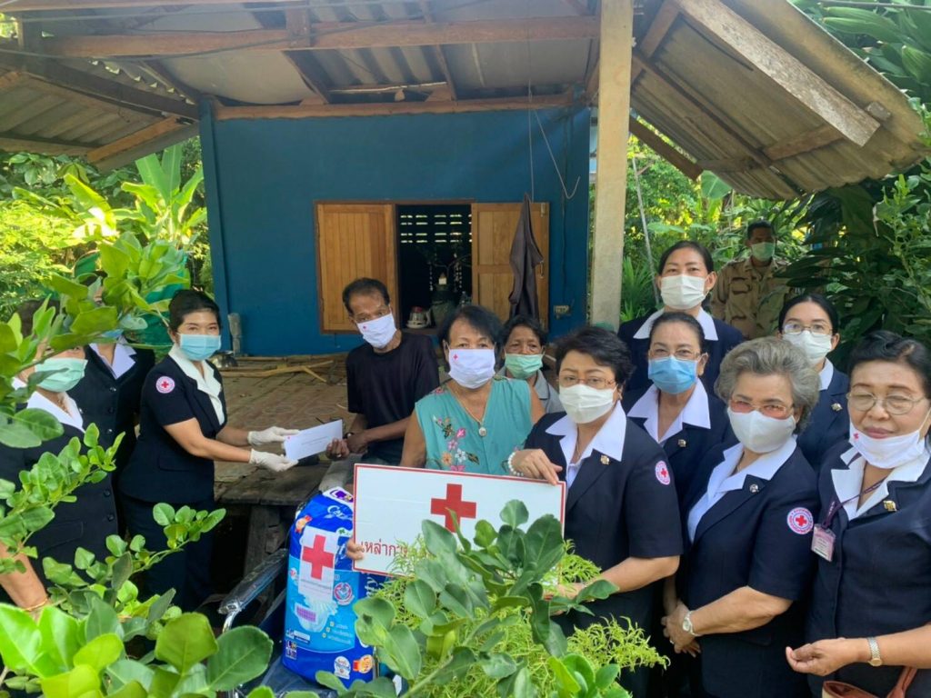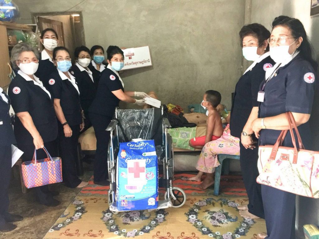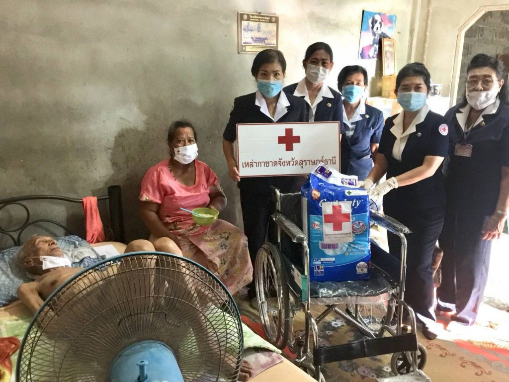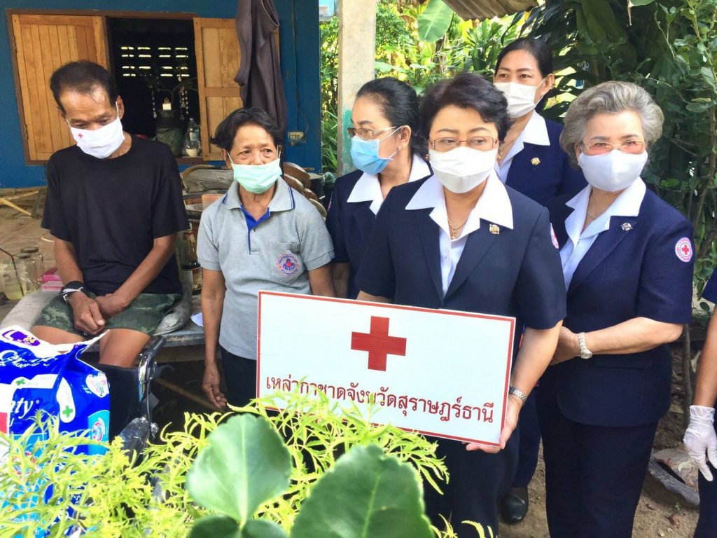 ในการนี้ เหล่ากาชาดจังหวัดสุราษฎร์ธานีได้มอบ รถเข็นวีลแชร์ ให้รายละ 1 คันผ้าอ้อมสำเร็จรูปสำหรับผู้ใหญ่ ให้รายละ 1 แพ็คและมอบเงิน ให้รายละ 3,000 บาท