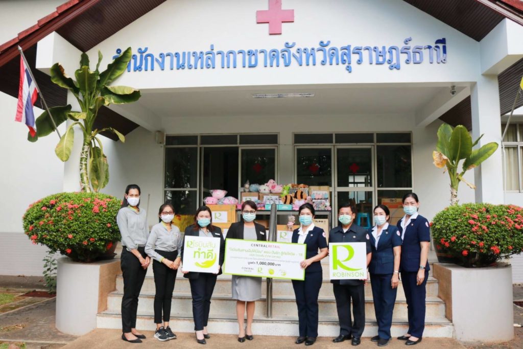 วันที่ 9 กันยายน 2563 นางอุรสา จินโต นายกเหล่ากาชาดจังหวัดสุราษฎร์ธานีพร้อมด้วย กรรมการฯ และสมาชิกเหล่ากาชาดจังหวัดสุราษฎร์ธานีได้ร่วมรับมอบอุปกรณ์การเรียน และสิ่งของเครื่องใช้จำเป็นในโครงการ “โรบินสันสานฝันให้น้อง ตอนปันรัก…สู้ภัยโควิด-19” ผ่านถุงปันรักให้น้อง ซึ่งประกอบไปด้วย อุปกรณ์การเรียน ,รองเท้า – ถุงเท้า , ชุดเซ็ตเสื้อผ้า , สินค้ากลุ่มโฮม ฯลฯเพื่อเร่งให้ความช่วยเหลือด้านสุขอนามัยและสิ่งของจำเป็นแก่เด็กๆ ด้อยโอกาสรวมถึงชาวบ้านในชุมชนที่ได้รับผลกระทบจากสถานการณ์การแพร่ระบาดไวรัสโควิด-19 มูลค่า รวม 1 ล้านบาท จากคณะผู้บริหารโรบินสันนำโดย คุณมนัสนันท์ ติณห์เตชัสผู้จัดการทั่วไป ห้างสรรพสินค้าโรบินสันสุราษฎร์ธานี ณ สำนักงานเหล่ากาชาดจังหวัดสุราษฎร์ธานี