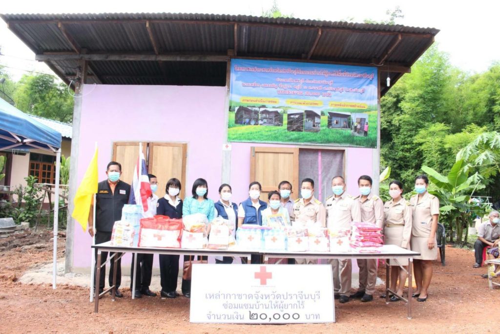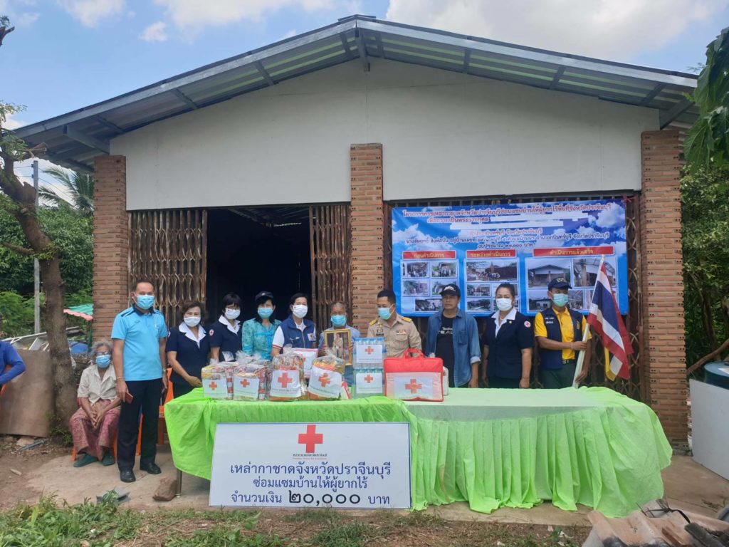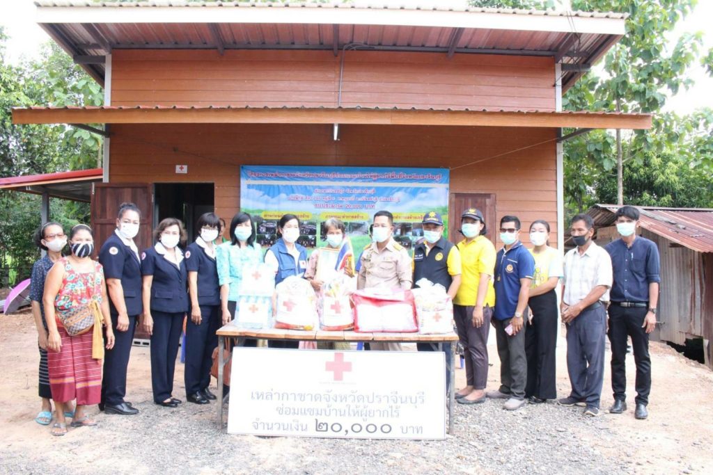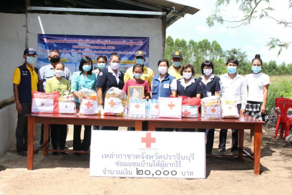 วันที่ 11 กันยายน 2563 นางอังคณา หัตถกิจโกศล นายกเหล่ากาชาดจังหวัดปราจีนบุรี มอบหมายให้ พ.ต.ท.หญิง สุมน เนื่องจำนงค์ กรรมการเหล่ากาชาดจังหวัดปราจีนบุรี พร้อมด้วยที่ปรึกษา กรรมการ และสมาชิกเหล่ากาชาดจังหวัดปราจีนบุรี ร่วมกับนายวัลลภ ประวัติวงค์ นายอำเภอกบินทร์บุรี ปลัดอำเภอ ผู้นำท้องที่/ท้องถิ่น อสม. จิตอาสา ร่วมรับมอบบ้านผู้ยากไร้ ซึ่งได้รับการสนับสนุนงบประมาณในการซ่อมแซมบ้านหลังละ 20,000 บาท จากโครงการเหล่ากาชาดจังหวัดปราจีนบุรีซ่อมแซมบ้านให้ผู้ยากไร้ประจำปีงบประมาณ พ.ศ.2563 ในพื้นที่อำเภอกบินทร์บุรี จำนวน 6 ราย ดังนี้