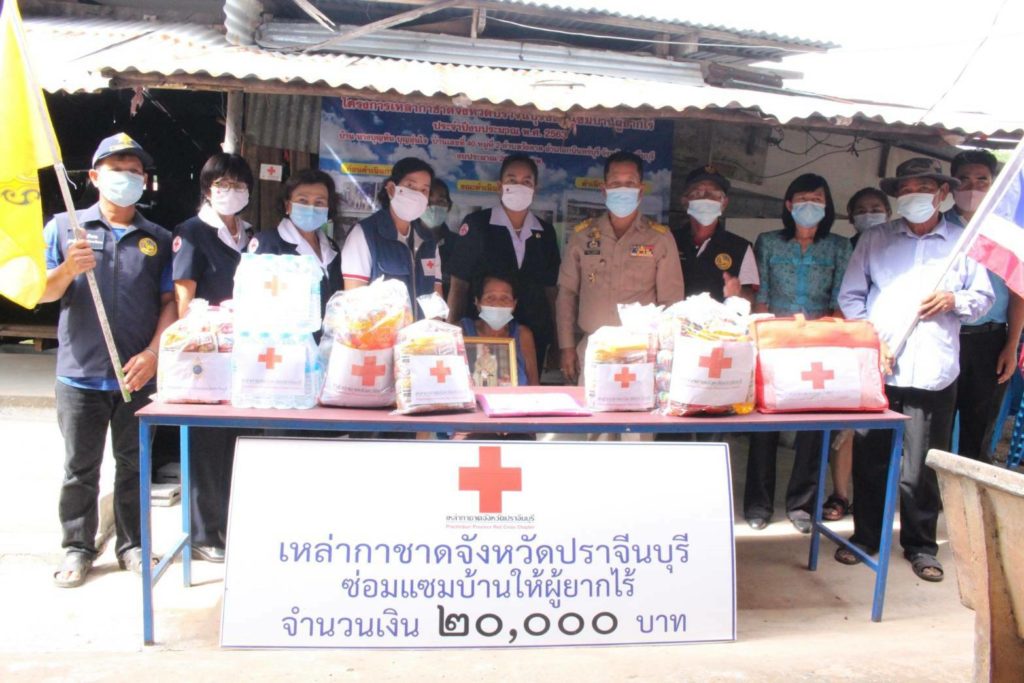 ในวันนี้ เหล่ากาชาดจังหวัดปราจีนบุรี ได้มอบเครื่องอุปโภค-บริโภคให้รายละ 2 ชุด น้ำดื่มรายละ 2 แพ็ค ชุดผ้าปูที่นอนรายละ 1 ชุด ผ้าห่มรายละ 1 ผืน และหน้ากากอนามัยรายละ 5 ชิ้น เพื่อเป็นการส่งเสริมคุณภาพชีวิตให้แก่ผู้ยากไร้และให้การสังคมสงเคราะห์ในเบื้องต้น