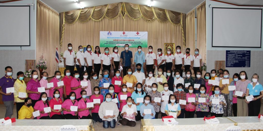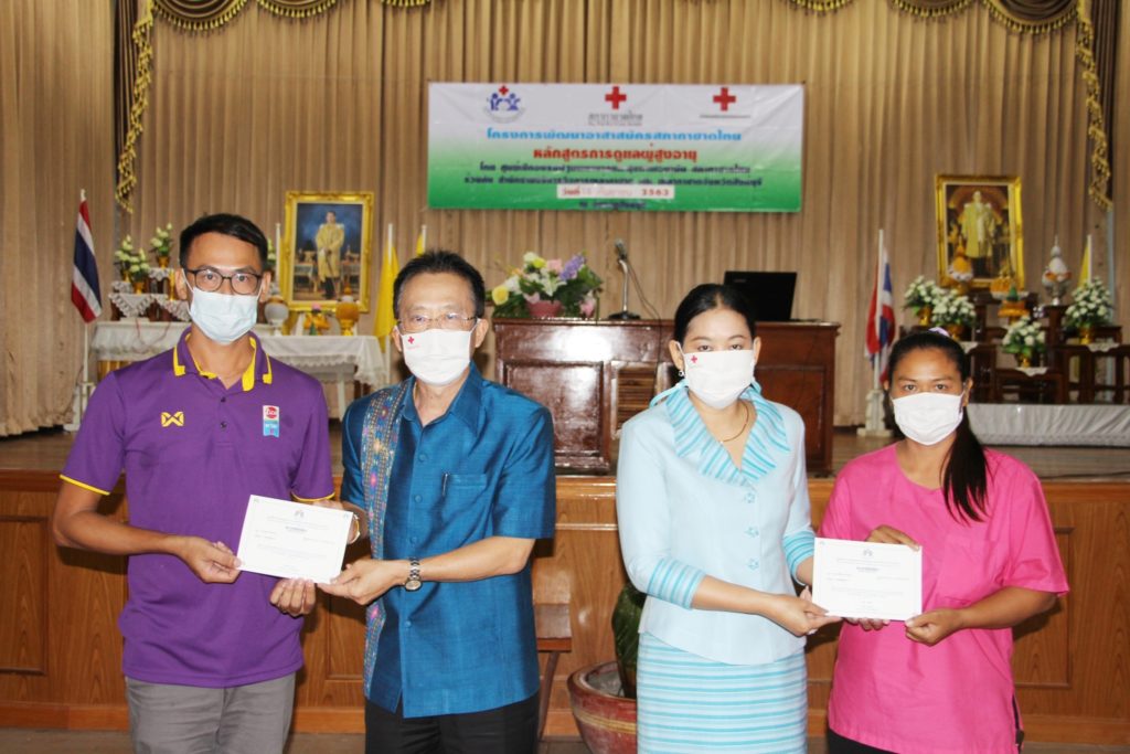 วันที่ 18 กันยายน 2563 เหล่ากาชาดจังหวัดสิงห์บุรี ได้จัดทำโครงการพัฒนาอาสาสมัครสภากาชาดไทย “หลักสูตรการดูแลผู้สูงอายุ รุ่นที่ 2” โดยจัดอบรมอาสาสมัคร จำนวน 50 คน ทั้งนี้ นางชุลีพร เตรัตน์ นายกเหล่ากาชาดจังหวัดสิงห์บุรี มอบให้นายสมยศ พุ่มน้อย เลขานุการเหล่ากาชาดจังหวัดสิงห์บุรี เป็นประธานพิธีปิดอบรมโครงการฯ และมอบประกาศเกียรติบัตรแก่ผู้เข้ารับการอบรมตามโครงการดังกล่าว โดยมีนางเนตรชนก พุ่มน้อย รองนายกเหล่ากาชาดจังหวัดสิงห์บุรี ร่วมมอบประกาศเกียรติบัตรฯ ณ ห้องประชุมโรงเรียนวัดสังฆราชาวาส อำเภอเมืองสิงห์บุรี จังหวัดสิงห์บุรี