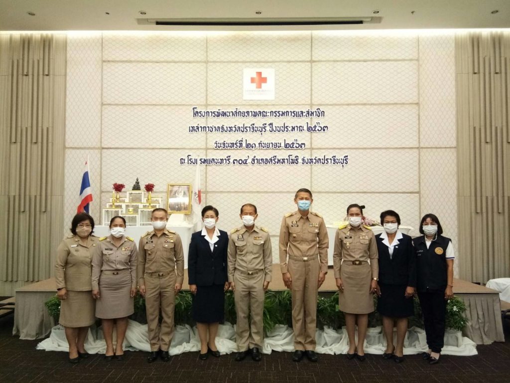 วันที่ 21 กันยายน 2563 โรงแรมแคนทารี่ 304 อ.ศรีมหาโพธิ นางอังคณา หัตถกิจโกศล นายกเหล่ากาชาดจังหวัดปราจีนบุรี เลขานุการ เหรัญญิกเหล่ากาชาดจังหวัด ที่ปรึกษา คณะกรรมการและสมาชิกเหล่ากาชาดจังหวัดปราจีนบุรีเข้าร่วมโครงการพัฒนาศักยภาพคณะกรรมการและสมาชิกเหล่ากาชาดจังหวัดปราจีนบุรี ประจำปีงบประมาณ 2563 เพื่อเพิ่มประสิทธิภาพการทำงาน สร้างความเข้าใจในบทบาทหน้าที่ ของคณะกรรมการและสมาชิกเหล่ากาชาดจังหวัด พร้อมแลกเปลี่ยนเรียนรู้ตลอดจนเสริมสร้างบุคลิกภาพ การวางตัว และการเข้าสังคม ในการนี้มีคณะกรรมการและสมาชิกเหล่ากาชาดเข้าร่วมโครงการจำนวน 100 ราย