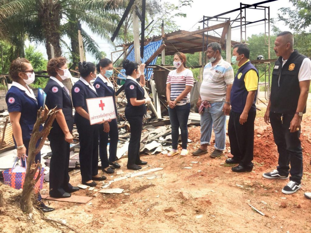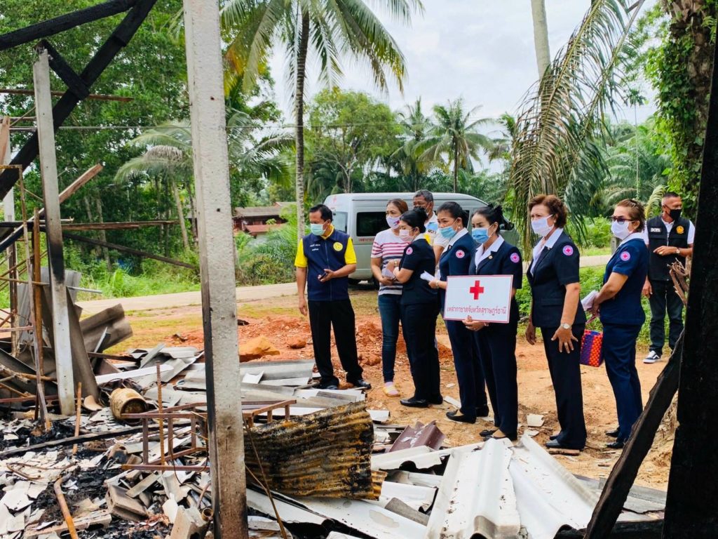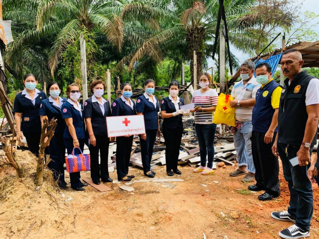 วันที่ 24 กันยายน 2563 นางอุรสา จินโต นายกเหล่ากาชาดจังหวัดสุราษฎร์ธานีพร้อมด้วย กรรมการฯ และสมาชิกเหล่ากาชาดจังหวัดสุราษฎร์ธานีนายเจริญศักดิ์ วงศ์สุวรรณ นายอำเภอไชยาปลัดอำเภอฯ ผู้ใหญ่บ้าน ผู้ช่วยผู้ใหญ่บ้านร่วมลงพื้นที่อำเภอไชยา จังหวัดสุราษฎร์ธานีเพื่อเยี่ยมครอบครัว นายธวัชชัย ชัยอินทร์ อายุ 49 ปี อาศัยอยู่กับภรรยาและบุตรสาว อยู่ในบ้านไม่มีเลขที่และได้เปิดเป็นร้านขายของ โดยตั้งอยู่ในพื้นที่ หมู่ที่ 4 ตำบลเวียง อำเภอไชยา จังหวัดสุราษฎร์ธานี ทั้งนี้ เมื่อวันศุกร์ที่ 18 กันยายน 2563 เวลาประมาณ 03:00 น. ได้เกิดเหตุเพลิงไหม้ บ้านพักอาศัยของ นายธวัชชัยฯโดยทรัพย์สินได้รับความเสียหายทั้งหลัง แต่ไม่มีผู้ใดได้รับบาดเจ็บสำหรับสาเหตุนั้น เกิดจากไฟฟ้าลัดวงจร