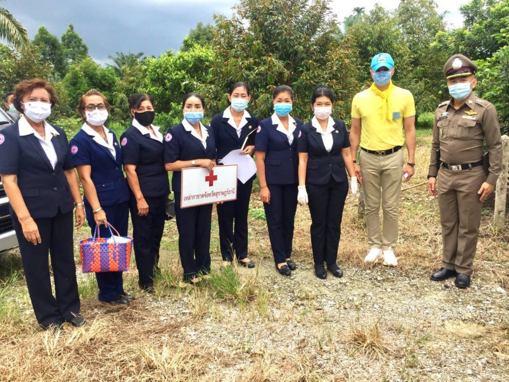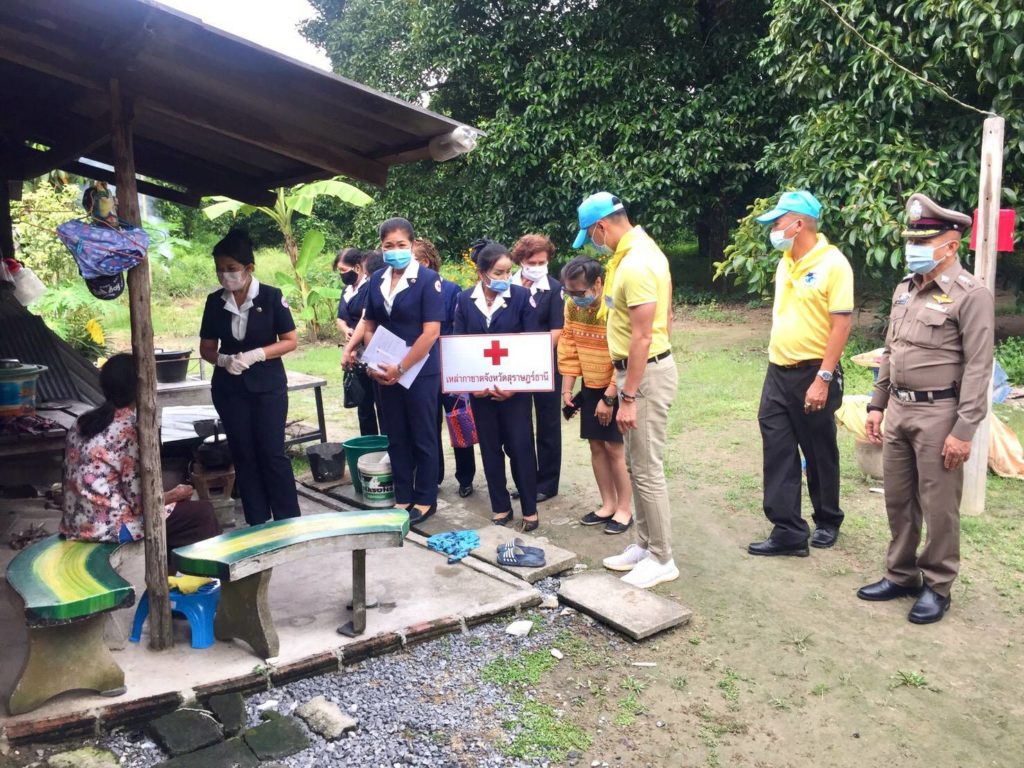ในการนี้ เหล่ากาชาดจังหวัดสุราษฎร์ธานีได้มอบเงินช่วยเหลือ จำนวน 5,000 บาทเพื่อเป็นขวัญกำลังใจและบรรเทาทุกข์ในเบื้องต้น พร้อมกันนี้ เหล่ากาชาดจังหวัดสุราษฎร์ธานีได้แจกหน้ากากอนามัยแบบผ้าที่มีตราสัญลักษณ์ สภากาชาดไทยให้กับประชาชนและ อสม. ในพื้นที่เพื่อป้องกันการแพร่ระบาดของเชื้อไวรัสโคโรนา 2019 ด้วย