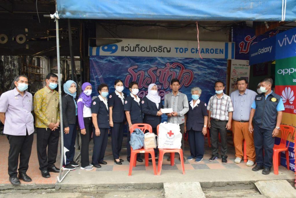 ในการนี้ ที่ปรึกษาเหล่ากาชาดจังหวัดปัตตานี/ภริยานายอำเภอสายบุรี และคณะฯ ได้ร่วมกันมอบมอบเงินช่วยเหลือจำนวน 3,000 บาท แก่ผู้รับมอบอำนาจจากนางสาววานรินทร์ เฮาะมะ เจ้าของบ้านเช่า พร้อมมอบถุงธารน้ำใจ จำนวน 1 ชุด ชุดเครื่องอุปโภคบริโภคในนามของจังหวัดปัตตานี จำนวน 1 ชุด เพื่อเป็นการช่วยเหลือเบื้องต้นให้แก่ ผู้แทนนางสาวไนยมุน สมาแอ เจ้าของร้านแว่นตาท็อปเจริญ ผู้เช่าบ้านเลขที่ 37