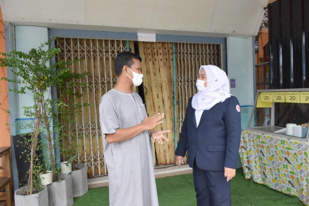 ในการนี้ ที่ปรึกษาเหล่ากาชาดจังหวัดปัตตานี/ภริยานายอำเภอสายบุรี และคณะฯ ได้ร่วมกันมอบถุงธารน้ำใจ จำนวน 1 ชุด, ชุดเครื่องอุปโภคบริโภคในนามของจังหวัดปัตตานี จำนวน 1 ชุด เพื่อเป็นการช่วยเหลือเบื้องต้นให้แก่ นายรีดวน หะยียูโซะ เจ้าของร้านขายไส้กรอก ผู้เช่าบ้านเลขที่ 33/1