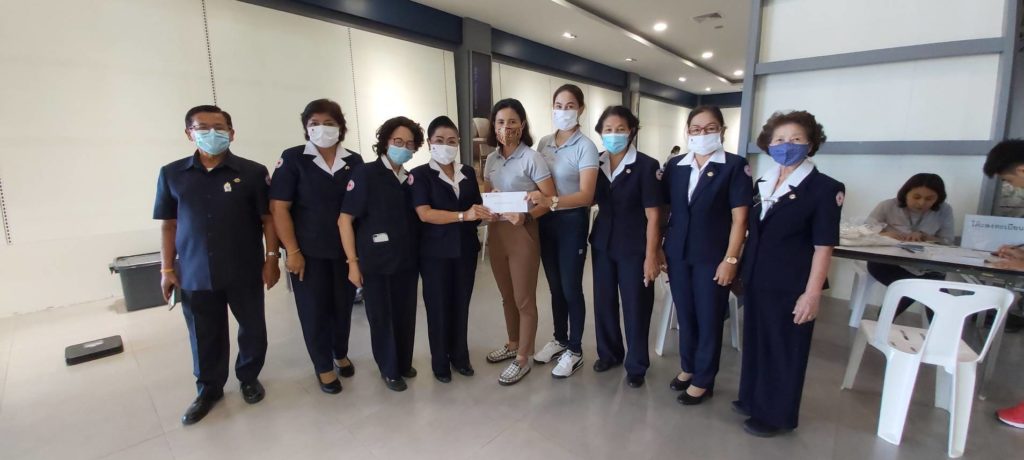 ในการนี้ เหล่ากาชาดจังหวัดสุราษฎร์ธานีได้มอบหน้ากากอนามัยแบบผ้าที่มีตราสัญลักษณ์ สภากาชาดไทย จำนวน 100 ชิ้นให้กับผู้ที่มาร่วมกิจกรรม และผู้มาลงทะเบียนบริจาคโลหิตผู้แสดงความจำนงบริจาคดวงตา และอวัยวะ เพื่อป้องกันการแพร่ระบาดของเชื้อไวรัสโคโรน่า 2019 (โควิด-19) ด้วย