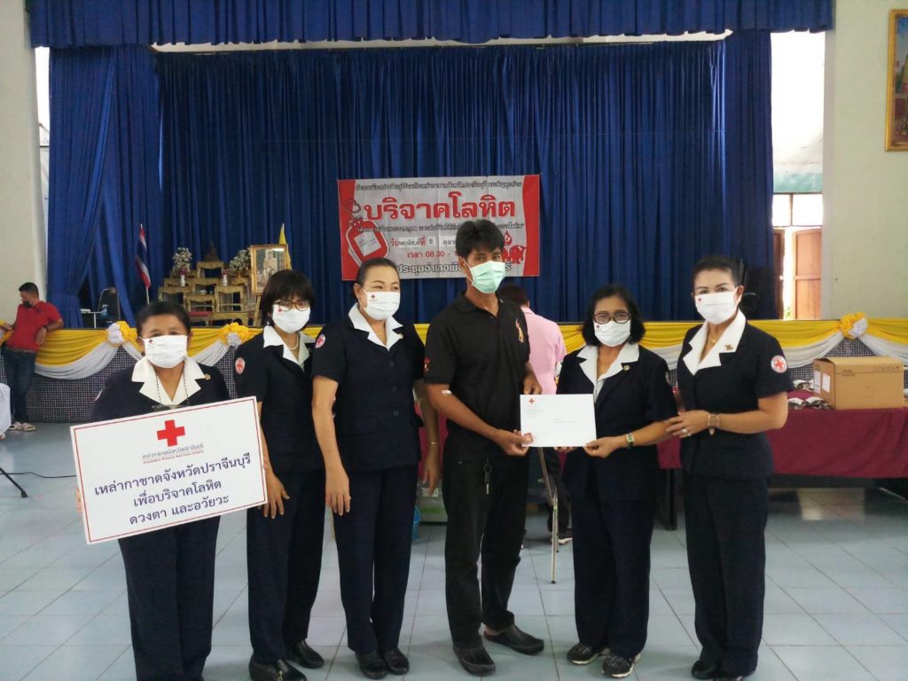 วันที่ 8 ตุลาคม 2563 ณ หอประชุมอำเภอเมืองปราจีนบุรีนางมัทนา สุวัณณุสส์ นายกเหล่ากาชาดจังหวัดปราจีนบุรี มอบหมายให้ กรรมการและสมาชิกเหล่ากาชาดจังหวัดปราจีนบุรี ร่วมกับโรงพยาบาลเจ้าพระยาอภัยภูเบศร ออกรับบริจาคโลหิต ดวงตา อวัยวะการออกหน่วยในวันนี้มีผู้มีจิตศรัทธาอันเป็นกุศลร่วมบริจาคโลหิต จำนวน 141 ราย ได้โลหิตจำนวน 111ราย/ยูนิต คิดเป็น 49,950 ซีซี แสดงความประสงค์บริจาคดวงตา 11 ราย อวัยวะ 10 ราย และร่างกาย 6 ราย ทั้งนี้ได้รับความร่วมมือจากปลัดอาวุโสอำเภอเมืองปราจีนบุรี ข้าราชการ ลูกจ้าง ผู้นำท้องที่/ท้องถิ่น พระสงฆ์ และประชาชนในพื้นที่อำเภอเมืองปราจีนบุรีเป็นอย่างดี ในวันนี้เหล่ากาชาดจังหวัดปราจีนบุรี ได้มอบหน้ากากอนามัยให้แก่ผู้มาร่วมบริจาคโลหิตและเจ้าหน้าที่ผู้ปฏิบัติงาน จำนวน 166 ชิ้นด้วยเหล่ากาชาดจังหวัดปราจีนบุรี ขอขอบพระคุณมา ณ โอกาสนี้