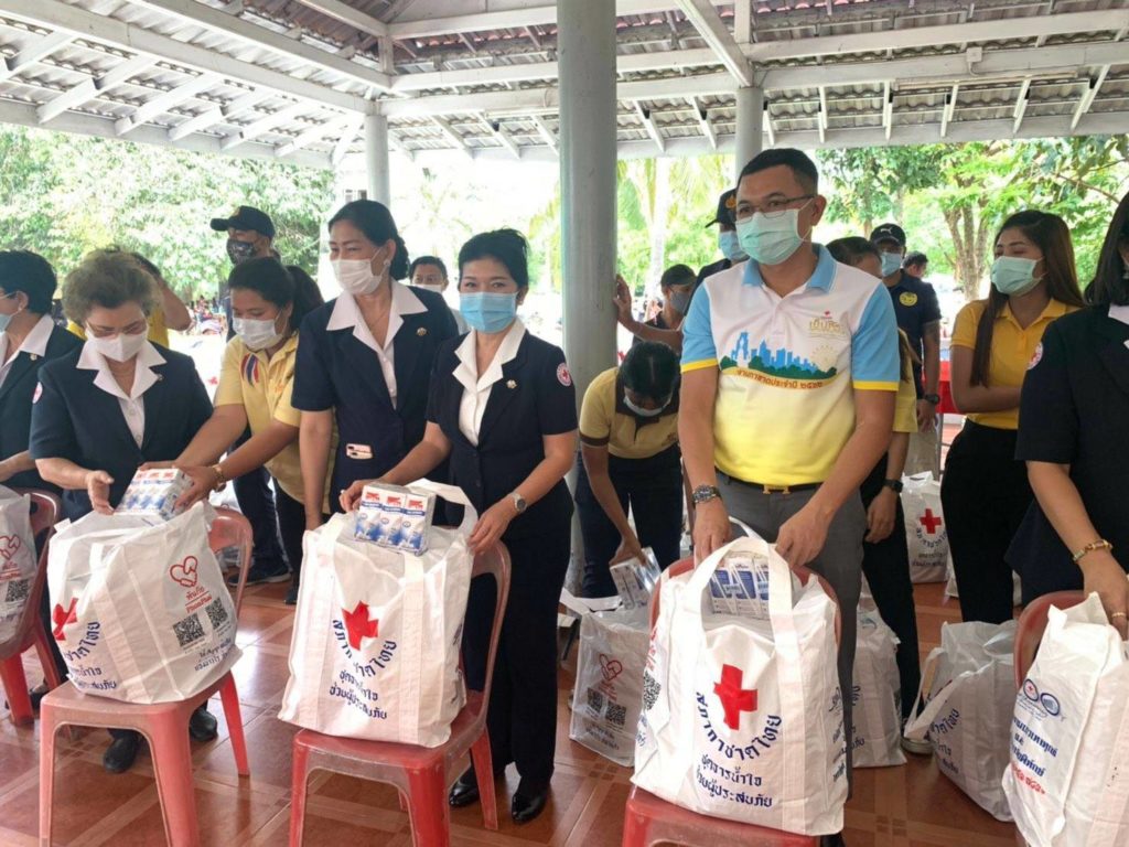 วันที่ 8 ตุลาคม 2563 นางอุรสา จินโต นายกเหล่ากาชาดจังหวัดสุราษฎร์ธานีพร้อม นายธีระพงค์ ช่วยชู นายอำเภอเกาะสมุย/นายกกิ่งกาชาดอำเภอเกาะสมุยเหรัญญิก/ที่ปรึกษา/กรรมการ/สมาชิกเหล่ากาชาดจังหวัดสุราษฎร์ธานีและกรรมการ/สมาชิกกิ่งกาชาดอำเภอเกาะสมุยปลัดอำเภอเกาะสมุยร่วมมอบชุดธารน้ำใจ ซึ่งประกอบด้วยเครื่องอุปโภค-บริโภค ที่ได้รับจากสถานีกาชาดสิรินธร (สถานีกาชาดที่ 12 ทุ่งสง)สำนักงานบรรเทาทุกข์และประชานามัยพิทักษ์ สภากาชาดไทยเพื่อช่วยเหลือกลุ่มแรงงานข้ามชาติที่ได้รับผลกระทบจากสถานการณ์โควิด-19 ในพื้นที่ อำเภอเกาะสมุย จำนวน 209 ชุดณ วัดสว่างอารมณ์ ตำบลบ่อผุดอำเภอเกาะสมุย จังหวัดสุราษฎร์ธานี