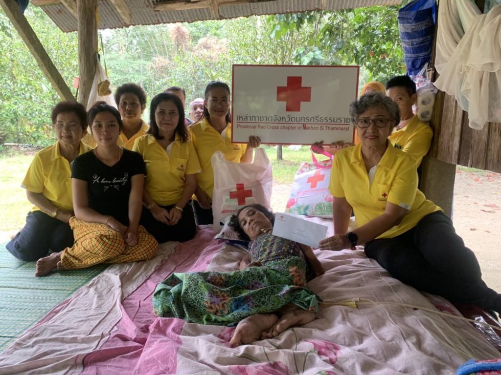 วันที่ 16 ธันวาคม 2562 นางรัติยา พัฒกุล นายกเหล่ากาชาดจังหวัดนครศรีธรรมราชมอบหมายให้คณะกรรมการเหล่ากาชาดจังหวัดนครศรีธรรมราชเยี่ยมและให้กำลังผู้ป่วยติดเตียง