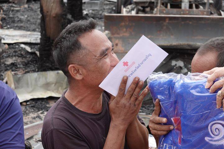 ในการนี้ เหล่ากาชาดจังหวัดอำนาจเจริญ ได้มอบเงินช่วยเหลือ จำนวน 5,000 บาท พัดลม 1 เครื่อง ผ้าห่ม 1 ฝืน ถุงยังชีพ 1 ถุง ให้กับผู้ประสบภัยเพื่อบรรเทาความเดือดร้อนในเบื้องต้น