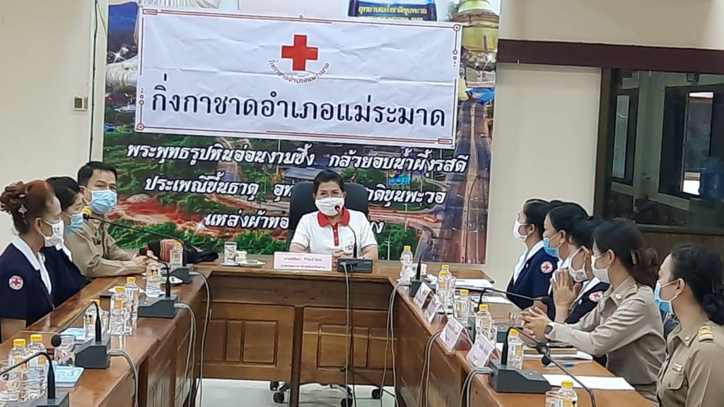 วันที่ 3 พฤศจิกายน 2563 นางศลิษา ภิรมย์รัตน์ นายกเหล่ากาชาดจังหวัดตาก ร่วมประชุมตรวจเยี่ยมการทำงานของสำนักงานกิ่งกาชาดอำเภอแม่ระมาด และมอบนโยบายแนวทางการดำเนินงานของเหล่ากาชาดจังหวัดตากและกิ่งกาชาดอำเภอแม่ระมาดให้ไปเป็นในแนวปฏิบัติที่ถูกต้องในด้านการเงิน การจัดการบุคคล การดูแลผู้ปฏิบัติงาน คนพิการของกิ่งกาชาดฯ เพื่อให้เป็นมาตรฐานเดียวกัน โดยมี นายเลิศศักดิ์ ทับผึ้ง นายอำเภอแม่ระมาด นางโสภา ทับผึ้ง นายกกิ่งกาชาดอำเภอแม่ระมาด เหรัญญิก เจ้าหน้าที่และกรรมการกิ่งกาชาดอำเภอแม่ระมาด ร่วมประชุมและให้การต้อนรับ ณ อำเภอแม่ระมาด จังหวัดตาก