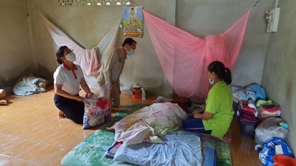 วันที่ 3 พฤศจิกายน 2563 นายพงศ์รัตน์ ภิรมย์รัตน์ ผู้ว่าราชการจังหวัดตาก ในฐานะประธานที่ปรึกษาคณะกรรมการเหล่ากาชาดจังหวัดตากและนางศลิษา ภิรมย์รัตน์ นายกเหล่ากาชาดจังหวัดตาก จัดกิจกรรม “วันผู้ว่าฯและนายกเหล่ากาชาด บรรเทาทุกข์ บำรุงสุข ปวงประชา “เพื่อแก้ไขปัญหาและช่วยเหลือประชาชนผู้เดือดร้อน ตามนโยบายสำนักบริหารกิจการเหล่ากาชาด โดยมีนายเลิศศักดิ์ ทับผึ้งนายอำเภอแม่ระมาด นางโสภา ทับผึ้ง นายกกิ่งกาชาดอำเภอแม่ระมาดและกรรมการกิ่งกาชาดอำเภอแม่ระมาด ได้เดินทางไปบ้านเลขที่ 197 หมู่ 8 ตำบลแม่ระมาด อำเภอแม่ระมาด ร่วมเยี่ยมพูดคุยและให้กำลังใจผู้ป่วยยากไร้ ราย เด็กชายอังกูร ดวงจันทร์ทิพย์ อายุ 11 ปี ป่วยเป็นโรคน้ำท่วมสมองตั้งแต่แรกเกิด มีพัฒนาการล่าช้า ช่วยเหลือตัวเองไม่ได้ โดยตากับยายเป็นคนดูแล พร้อมทั้งมอบถุงยังชีพเพื่อใช้ดำรงชีพต่อไป