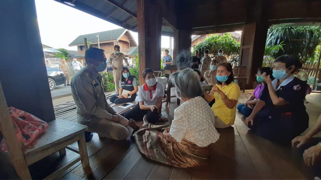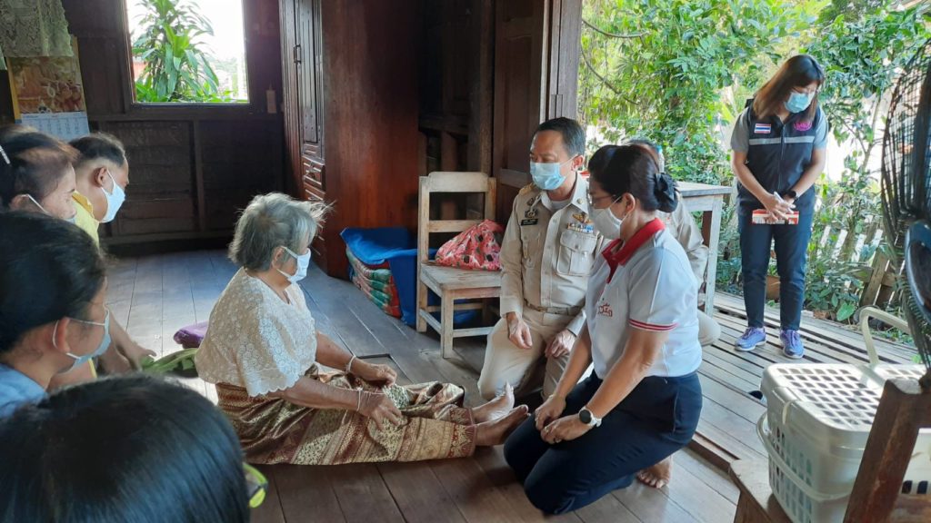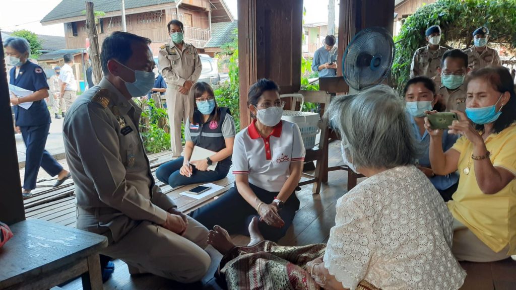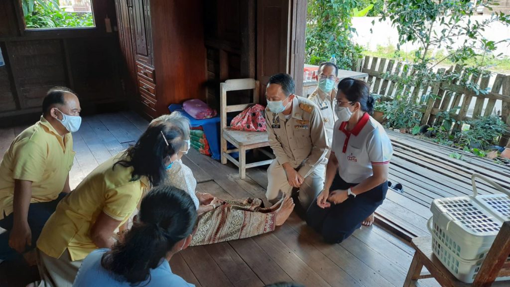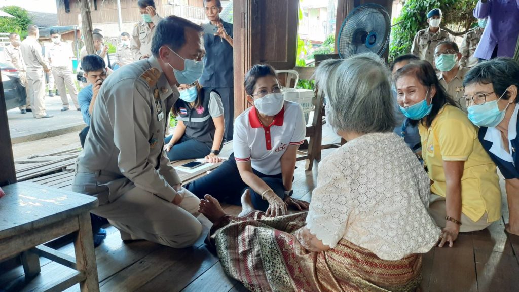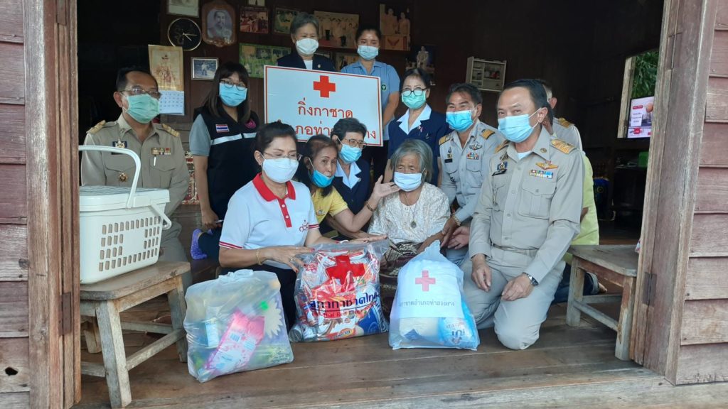 วันที่ 3 พฤศจิกายน 2563 นายพงศ์รัตน์ ภิรมย์รัตน์ ผู้ว่าราชการจังหวัดตาก ในฐานะประธานที่ปรึกษาคณะกรรมการเหล่ากาชาดจังหวัดตากและนางศลิษา ภิรมย์รัตน์ นายกเหล่ากาชาดจังหวัดตาก จัดกิจกรรม “ วันผู้ว่าฯและนายกเหล่ากาชาด บรรเทาทุกข์ บำรุงสุข ปวงประชา “ เพื่อแก้ไขปัญหาและช่วยเหลือประชาชนผู้เดือดร้อน ตามนโยบายสำนักบริหารกิจการเหล่ากาชาด พร้อมด้วย นายยงยุทธ สุขศิริ นายอำเภอท่าสองยาง/นายกกิ่งกาชาดอำเภอท่าสองยางและกรรมการกิ่งกาชาดอำเภอท่าสองยาง ได้เดินทางไปบ้านเลขที่ 83 หมู่ 1 ตำบลแม่ต้าน อำเภอท่าสองยาง ร่วมเยี่ยมพูดคุยและให้กำลังใจผู้สูงอายุยากไร้ ราย นางจันทร์นวล บุญมา อายุ 85 ปี มีปัญหาคือสายตามองไม่เห็น ปัจจุบันอาศัยอยู่กับลูก 2 คน และลูกสะใภ้ ลูกมีอาชีพเก็บของเก่าขาย สภาพบ้านเสื่อมโทรม โดยมีรายได้จากเบี้ยยังชีพผู้สูงอายุปัจจุบันรับเงิน 800 บาท รายได้ไม่เพียงพอและมีฐานะยากจน ทั้งนี้ได้มอบถุงยังชีพเพื่อใช้ดำรงชีพต่อไป