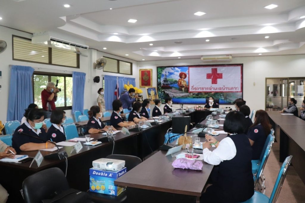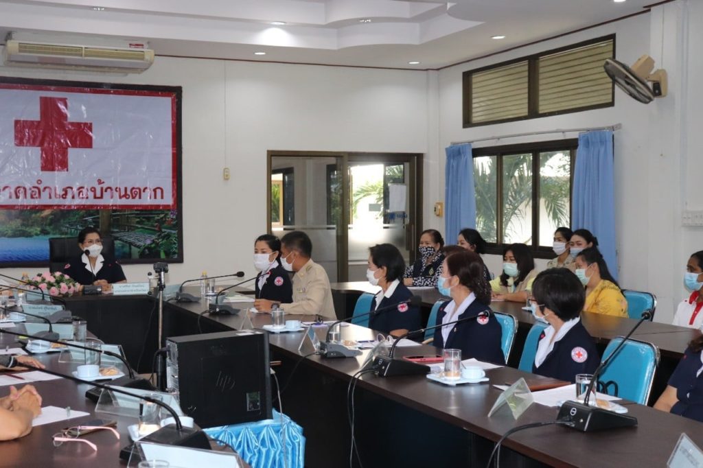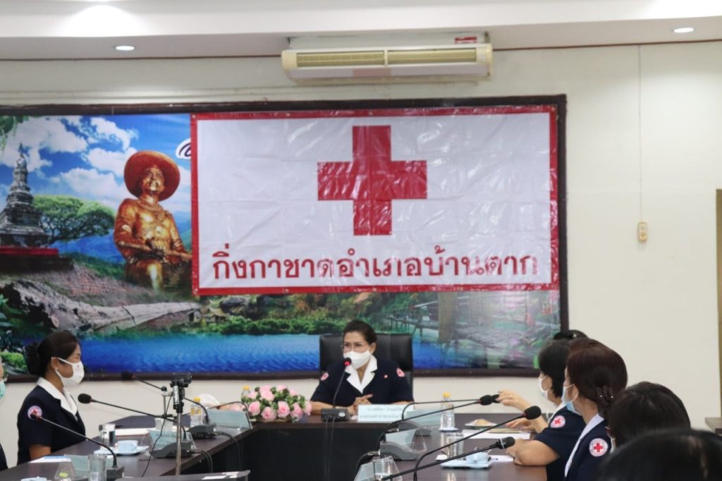 วันที่ 4 พฤศจิกายน 2563 นางศลิษา ภิรมย์รัตน์ นายกเหล่ากาชาดจังหวัดตาก พร้อมด้วย นางจรูญลักษณ์ โชติมานนท์ รองนายกเหล่ากาชาดจังหวัดตาก ร่วมประชุม ตรวจเยี่ยมการทำงานของสำนักงานกิ่งกาชาดอำเภอบ้านตาก และมอบนโยบายแนวทางการดำเนินงานของเหล่ากาชาดจังหวัดตากและกิ่งกาชาดอำเภอบ้านตากให้ไปเป็นในแนวปฏิบัติที่ถูกต้องในด้านการเงิน การจัดการบุคคล การดูแลผู้ปฏิบัติงาน คนพิการของกิ่งกาชาดฯ เพื่อให้เป็นมาตรฐานเดียวกัน โดยมี นางศิริลักษณ์ พึ่งเนียม นายกกิ่งกาชาดอำเภอบ้านตาก ปลัดอำเภอ เจ้าหน้าที่และกรรมการกิ่งกาชาดอำเภอบ้านตาก ร่วมประชุมและให้การต้อนรับ ณ กิ่งกาชาดอำเภอบ้านตาก จังหวัดตาก
