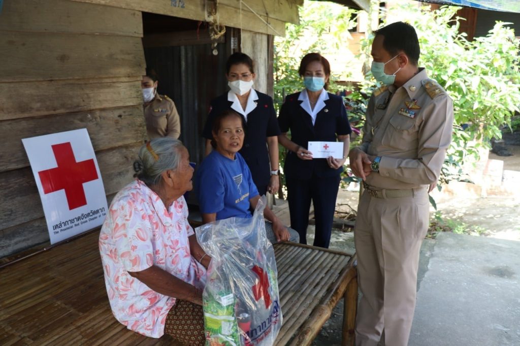วันที่ 4 พฤศจิกายน 2563 นายพงศ์รัตน์ ภิรมย์รัตน์ ผู้ว่าราชการจังหวัดตาก ในฐานะประธานที่ปรึกษาคณะกรรมการเหล่ากาชาดจังหวัดตากและนางศลิษา ภิรมย์รัตน์ นายกเหล่ากาชาดจังหวัดตาก จัดกิจกรรม “ วันผู้ว่าฯและนายกเหล่ากาชาด บรรเทาทุกข์ บำรุงสุข ปวงประชา “ เพื่อแก้ไขปัญหาและช่วยเหลือประชาชนผู้เดือดร้อน ตามนโยบายสำนักบริหารกิจการเหล่ากาชาด โดยมี นายสวนิต สุริยกุล ณ อยุธยา ปลัดจังหวัดตาก/เลขานุการเหล่ากาชาดจังหวัดตาก นายอรรถวุฒิ พึ่งเนียม นายอำเภอบ้านตากและกรรมการกิ่งกาชาดอำเภอบ้านตาก ลงพื้นที่ บ้านเลขที่ 73 หมู่ที่ 3 ตำบลตากออก อำเภอบ้านตาก ร่วมเยี่ยมพูดคุยและให้กำลังใจผู้สูงอายุยากไร้ ราย นางปวน วงษ์จ่า เป็นผู้สูงอายุและต้องดูแลบุตรที่ป่วยเป็นโรคมะเร็ง 2 คน มีเพียงรายได้จากเบี้ยผู้สูงอายุ รายได้ไม่เพียงพอ มีฐานะยากจน ทั้งนี้ได้มอบถุงยังชีพและเงินช่วยเหลือเพื่อใช้ดำรงชีพต่อไป