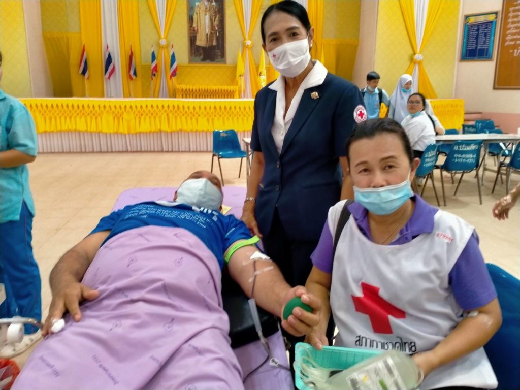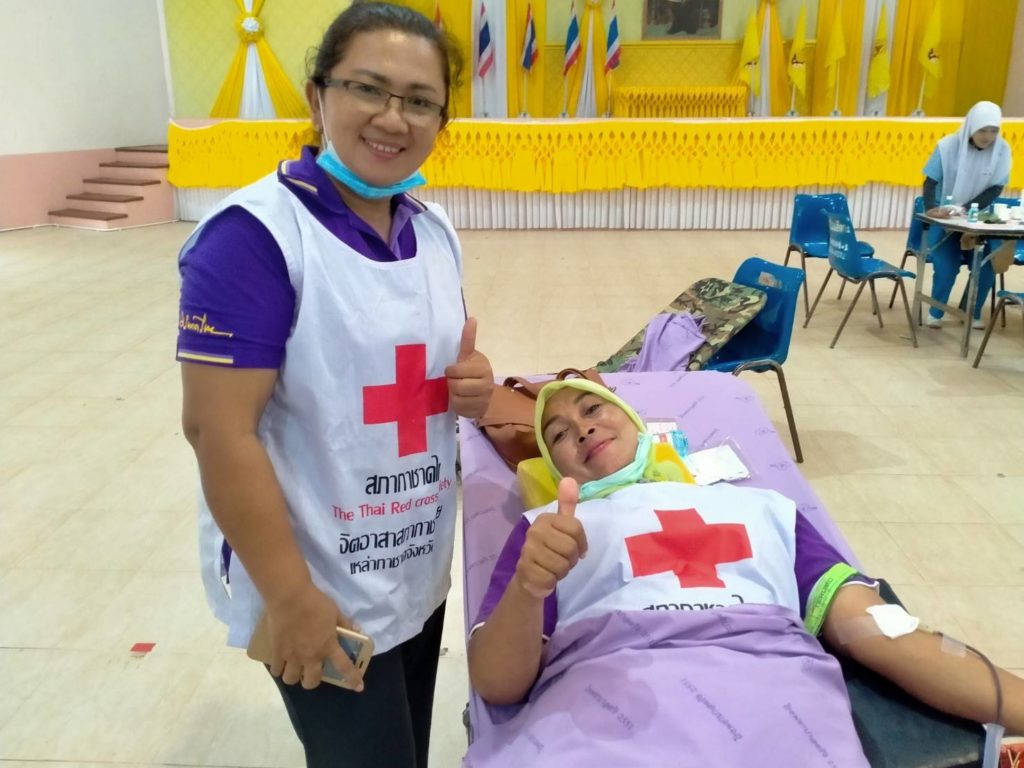 วันที่ 15 ตุลาคม 2563 นางละมัย เจริญโสภา นายกเหล่ากาชาดจังหวัดตรัง มอบหมายคณะกรรมการเหล่ากาชาด สมาชิกและจิตอาสาสภากาชาดไทย ร่วมกับธนาคารเลือดโรงพยาบาลตรัง ออกหน่วยรับบริจาคโลหิต ดวงตา และอวัยวะ ณ ศาลาประชาคม อ.ปะเหลียน จ.ตรัง โดยมีนายไพโรจน์ ศรีละมุน นายอำเภอปะเหลียนนำบุคคลากรร่วมบริจาคโลหิตด้วยสำหรับวันนี้ มีผู้บริจาคทั้งหมด 165 ราย ได้โลหิต 106 ยูนิต คิดเป็นปริมาณ 42,400 ซีซี. มีผู้แสดงความจำนงบริจาคดวงตา จำนวน 4 ราย และผู้แสดงความจำนงบริจาคอวัยวะ 4 ราย พร้อมมอบหน้ากากผ้าสัญญลักษณ์กาชาด 110 ชิ้น และแอลกอฮอล์ 72% 110 ขวด