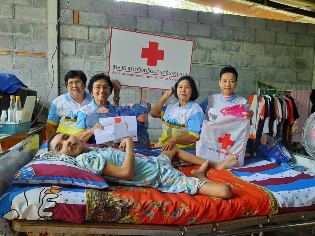 วันที่17 ธันวาคม 2562 นางรัติยา พัฒกุล นายกเหล่ากาชาดจังหวัดนครศรีธรรมราชมอบหมายให้คณะกรรมการเหล่ากาชาดจังหวัดนครศรีธรรมราชเยี่ยมและให้กำลังผู้ป่วยติดเตียง