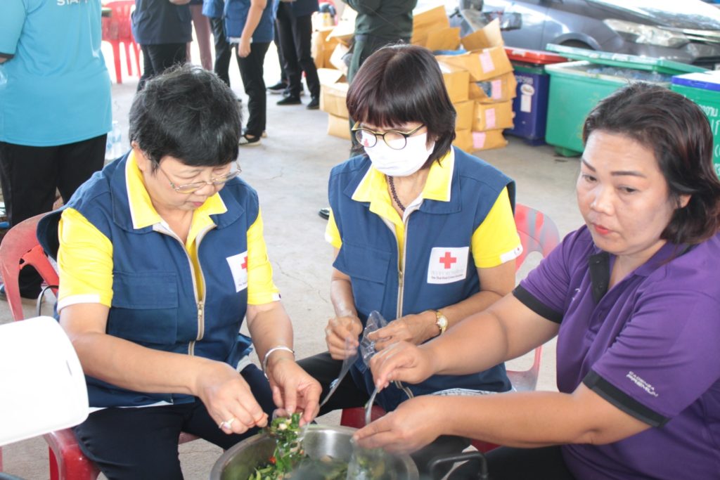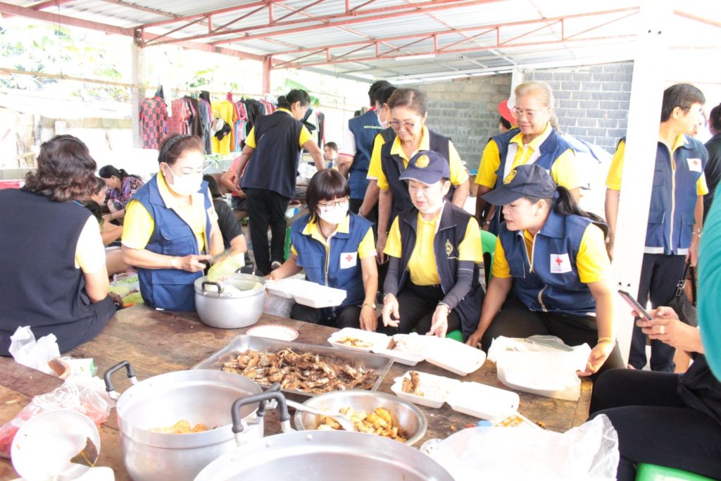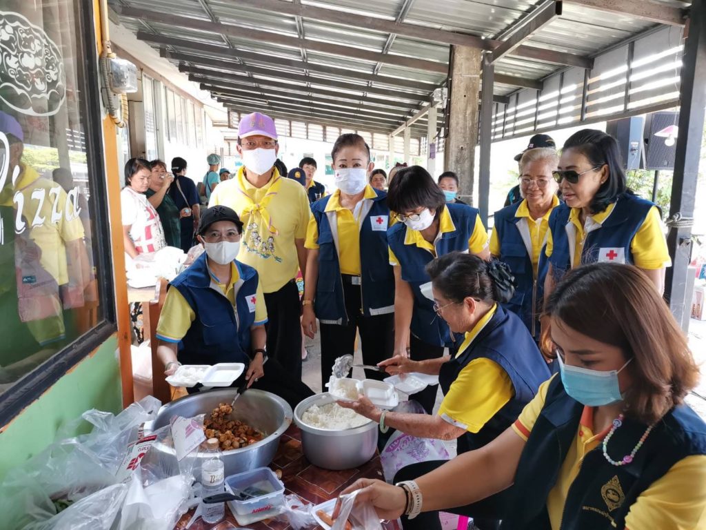 นางมัทนา สุวัณณุสส์ นายกเหล่ากาชาดจังหวัดปราจีนบุรี นายรณรงค์ นครจินดา รองผู้ว่าราชการจังหวัดปราจีนบุรี/รองนายกเหล่ากาชาดจังหวัดปราจีนบุรี รอง ผอ.รมน.จ.ปจ. (ท) ที่ปรึกษา คณะกรรมการ และสมาชิกเหล่ากาชาดปราจีนบุรี ร่วมลงพื้นที่ตรวจเยี่ยมให้กำลังใจ และประกอบอาหารเลี้ยง จนท.ผู้ปฏิบัติหน้าที่ช่วยเหลือ และผู้ประสบภัยจากน้ำป่าไหลหลาก ในท้องที่ อ.นาดี ณ อบต.บุพราหมณ์ กลุ่มวิสาหกิจชุมชนกลุ่มแม่บ้านทับลาน ม.1 และที่ทำการ ผญ. บ้าน ม.4 ต.บุพราหมณ์ พร้อมรับมอบวัตถุดิบจาก คณะกรรมการเหล่ากาชาด อ.ประจันตคาม อ.เมือง และ อ.กบินทร์บุรี ผู้ประกอบการภาคเอกชน สำหรับประกอบเลี้ยง จนท. และชาวบ้านผู้ได้รับความเดือดร้อน