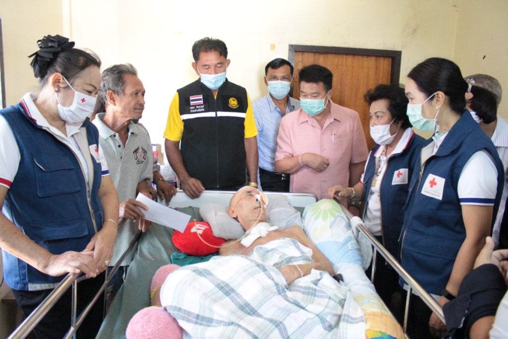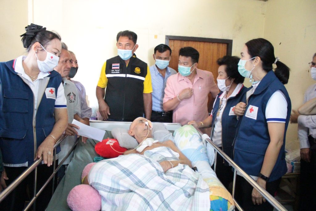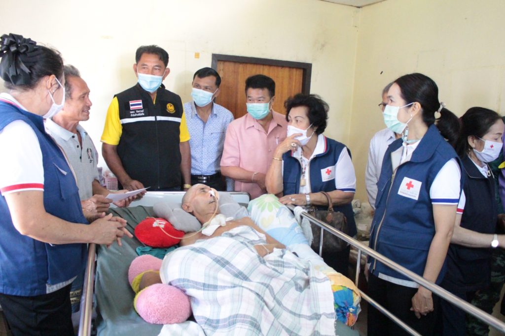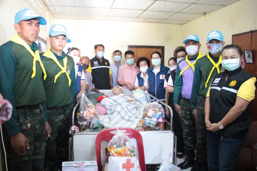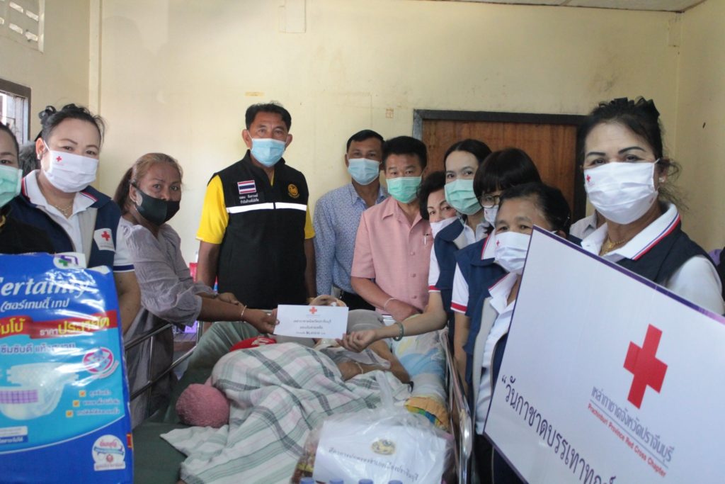 วันที่ 10 พฤศจิกายน 2563 นางมัทนา สุวัณณุสส์ นายกเหล่ากาชาดจังหวัดปราจีนบุรี พร้อมด้วย ที่ปรึกษา คณะกรรมการ และสมาชิกเหล่ากาชาดจังหวัดปราจีนบุรี นายอำเภอเมืองปราจีนบุรี จิตอาสา 904 ร.2 พัน 1 รอ. สาธารณสุขอำเภอ/ตำบล ผู้นำท้องที่ท้องถิ่น ลงพื้นที่เยี่ยมให้กำลังใจและช่วยเหลือผู้ป่วยติดเตียง ยากไร้ และด้อยโอกาส ราย นายศรีศักดิ์ ขุนเจริญ อายุ 61 ปี บ้านเลขที่ 220 หมู่ 11 ต.โคกไม้ลาย อ.เมืองปราจีนบุรี จ.ปราจีนบุรี ซึ่งเป็นผู้ป่วยติดเตียง พิการ ยากไร้ และไม่สามารถช่วยเหลือตนเองได้ โดย เหล่ากาชาดจังหวัดปราจีนบุรี ได้มอบเงินช่วยเหลือเบื้องต้น จำนวน 2,000 บาท ถุงยังชีพ จำนวน 1 ชุด แพมเพิส จำนวน 1 แพค เพื่อเป็นการช่วยเหลือตามพันธกิจด้านสังคมสงเคราะห์