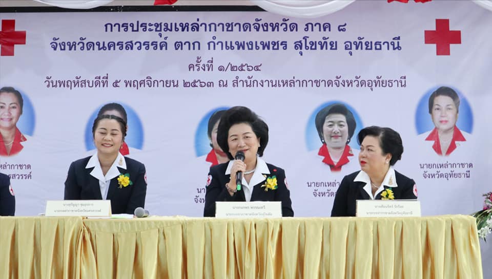 วันที่ 5 พฤศจิกายน 2563 นางกนกพร พรรณเทวี นายกเหล่ากาชาดจังหวัดสุโขทัย พร้อมด้วย นางพร้อมจันทร์ คมมงคลเจริญ นางสุวภี อุไรวรณ์ รองนายกเหล่ากาชาดจังหวัดสุโขทัย เหรัญญิกกรรมการ MOU. และเจ้าหน้าที่บริหารงานทั่วไป ร่วมการประชุมเหล่ากาชาดจังหวัดภาค 8 ครั้งที่ 1/2564 ประกอบด้วย จังหวัดอุทัยธานี จังหวัดนครสวรรค์ จังหวัดตาก และจังหวัดกำแพงเพชร โดยมี นายแผน วรรณเมธี เลขาธิการสภากาชาดไทย เป็นประธานในพิธีเปิดการประชุม และนายณรงค์ รักร้อย ผู้ว่าราชการจังหวัดอุทัยธานี กล่าวต้อนรับ ซึ่งการประชุมครั้งนี้ มีวัตถุประสงค์เพื่อนำเสนอผลการดำเนินงานของเหล่ากาชาดแต่ละจังหวัด การได้พบปะ แลกเปลี่ยนความคิดเห็นและประสบการณ์แนวทางในการปฏิบัติงาน ในการดำเนินงานตามพันธกิจของเหล่ากาชาดจังหวัดให้กับงานของสภากาชาดไทยต่อไปณ สำนักงานเหล่ากาชาดอุทัยธานี จังหวัดอุทัยธานี