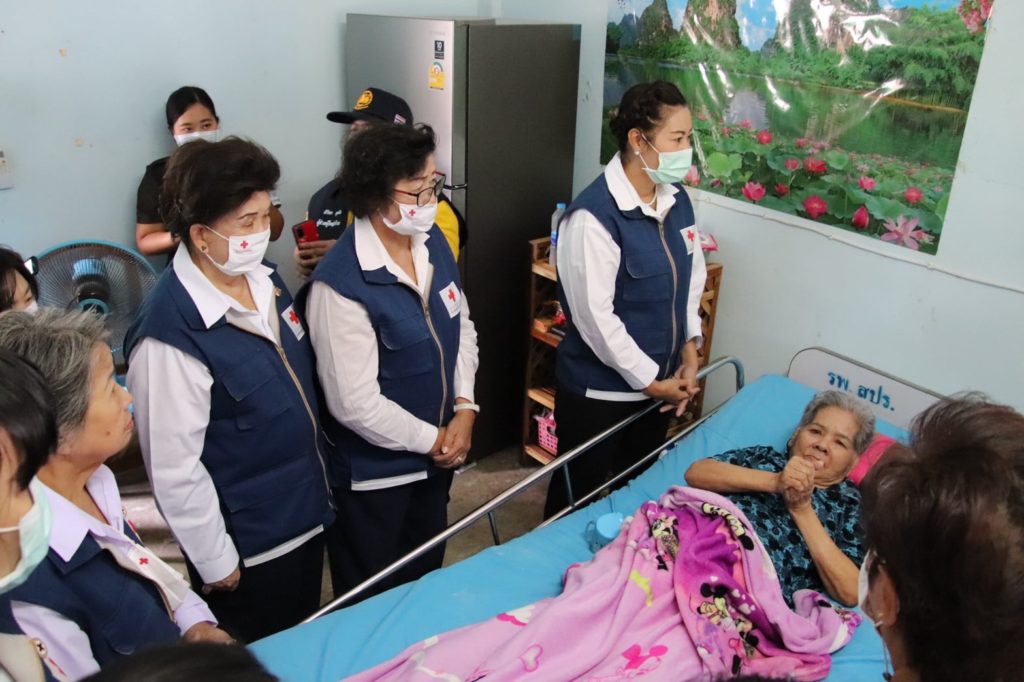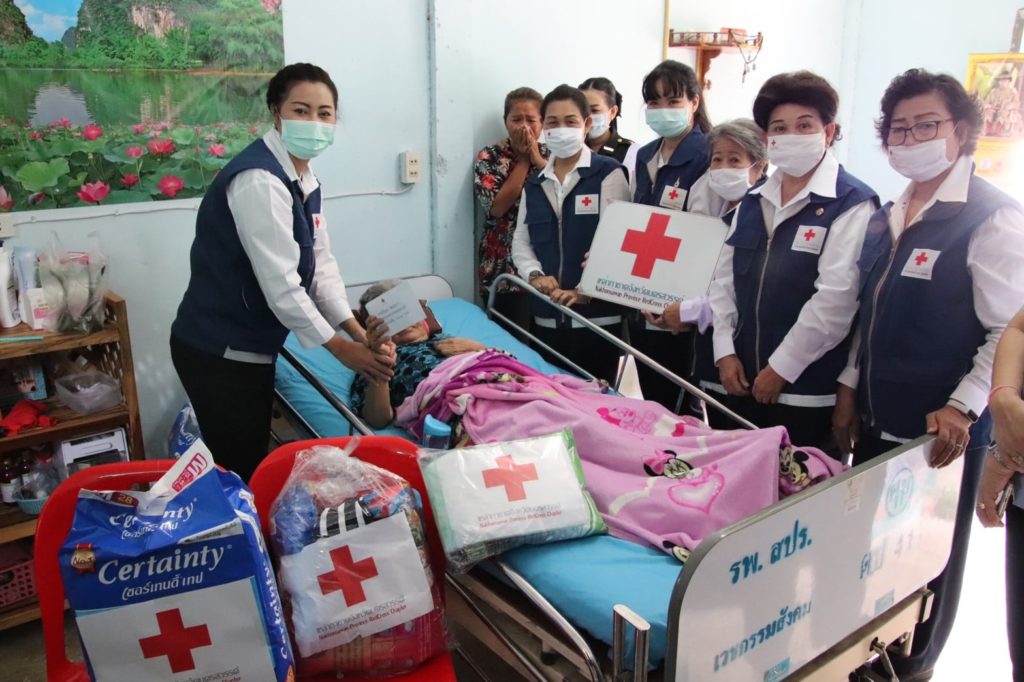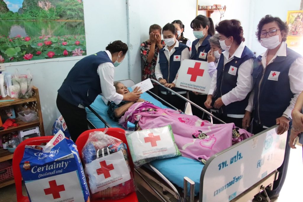 วันที่ 11 พฤศจิกายน 2563 นางสุกัญญา ชุมอุปการ นายกเหล่ากาชาดจังหวัดนครสวรรค์ พร้อมด้วยคณะกรรมการและสมาชิกเหล่ากาชาดจังหวัดนครสวรรค์ ลงพื้นที่เยี่ยมและให้กำลังใจครอบครัวนางเฉลียว รองเนียม อายุ 75 ปี ซึ่งเป็นผู้ป่วยติดเตียง ณ บ้านพักในสนามกอล์ฟ (ค่ายจิรประวัติ) บ้านเลขที่ 8/721 ม.2 ต.นครสวรรค์ออก อ.เมือง จ.นครสวรรค์ โดยเหล่ากาชาดจังหวัดนครสวรรค์ มอบเงินช่วยเหลือ 3,000 บาท ผ้าอ้อมสำเร็จรูปสำหรับผู้ใหญ่ พร้อมเครื่องอุปโภค บริโภค เพื่อเป็นการบรรเทาทุกข์ในเบื้องต้น และให้กำลังใจในการดำเนินชีวิตต่อไป