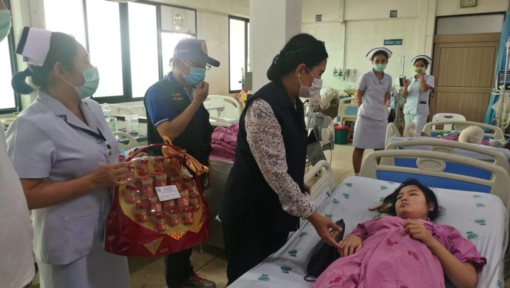 วันที่ 14 พฤศจิกายน 2563 นางอนุรี วิศิษฏ์วงศ์ นายกเหล่ากาชาดจังหวัดนครศรีธรรมราช เยี่ยมให้กำลังและมอบเงินช่วยนางสาวเพ็ญนภา ทวีทรัพย์ ณ โรงพยาบาลสิชล อำเภอสิชล จังหวัดนครศรีธรรมราช ซึ่งป่วยเป็นโรคซึมเศร้า