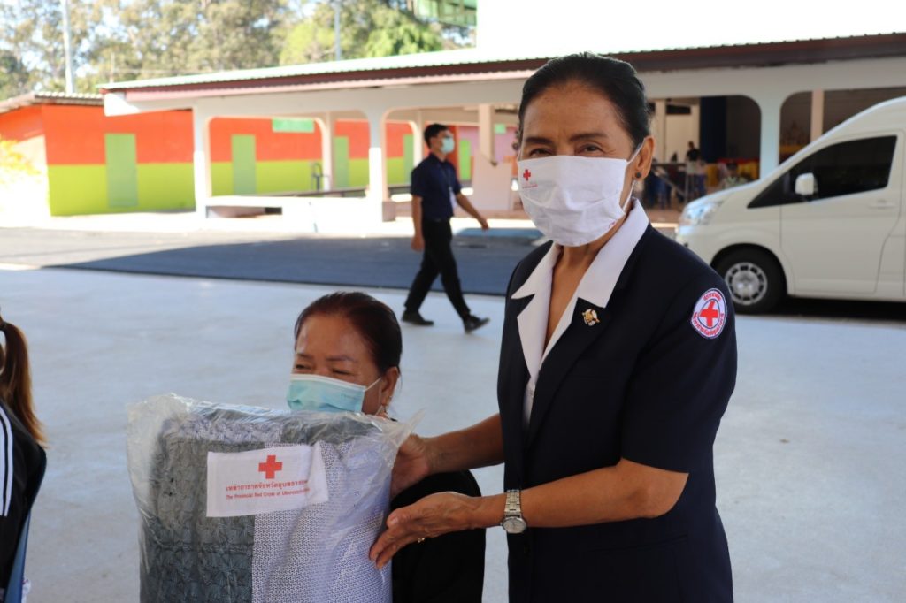 วันที่ 17 พฤศจิกายน 2563 นางยุพาภร วิฑูรย์ นายกเหล่ากาชาดจังหวัดอุบลราชธานี พร้อมด้วยกรรมการเหล่ากาชาดจังหวัดอุบลราชธานี ที่ปรึกษาเหล่ากาชาดจังหวัดอุบลราชธานี เเละสมาชิกเหล่ากาชาดจังหวัดอุบลราชธานี ร่วมมอบผ้าห่มต้านภัยหนาวให้เเก่ราษฎร ในเขตพื้นที่จังหวัดอุบลราชธานี ณ หอประชุมที่ว่าการอำเภอสำโรง จำนวน 100 ผืน อำเภอสำโรง จังหวัดอุบลราชธานี