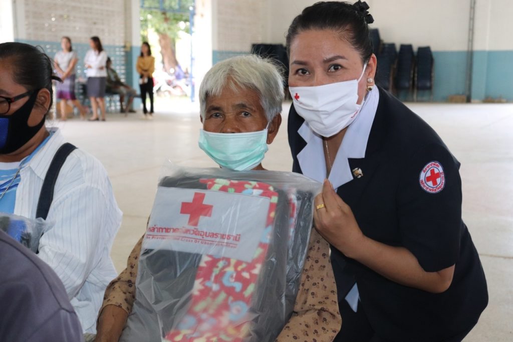 วันที่ 17 พฤศจิกายน 2563 นางยุพาภร วิฑูรย์ นายกเหล่ากาชาดจังหวัดอุบลราชธานี พร้อมด้วย กรรมการเหล่ากาชาดจังหวัดอุบลราชธานี ที่ปรึกษาเหล่ากาชาดจังหวัดอุบลราชธานี เเละสมาชิกเหล่ากาชาดจังหวัดอุบลราชธานี ร่วมมอบผ้าห่มต้านภัยหนาวให้เเก่ราษฎร ในเขตพื้นที่จังหวัดอุบลราชธานี ณ หอประชุมที่ว่าการอำเภอทุ่งศรีอุดม จำนวน 100 ผืน อำเภอทุ่งศรีอุดม จังหวัดอุบลราชธานี