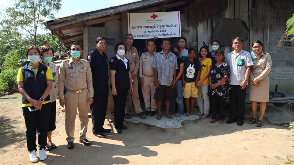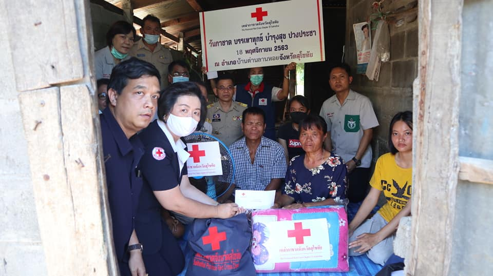 วันที่ 18 พฤศจิกายน 2563 นางกนกพร พรรณเทวี นายกเหล่ากาชาดจังหวัดสุโขทัย พร้อมด้วยนางพร้อมจันทร์ ทีคะสุข รองนายกเหล่ากาชาดจังหวัดสุโขทัย และคณะกรรมการเหล่ากาชาดจังหวัดสุโขทัย ร่วมโครงการหน่วยบำบัดทุกข์ บำรุงสุข สร้างรอยยิ้มให้ประชาชน จังหวัดสุโขทัย โดยเหล่ากาชาดจังหวัดสุโขทัย มอบถุงธารน้ำใจให้ผู้ยากไร้ จำนวน 100 ถุง ณ โรงเรียนบ้านลานกระบือ ตำบลตลิ่งชัน อำเภอบ้านด่านลานหอยจังหวัดสุโขทัย และออกเยี่ยมผู้ตกเกณฑ์ จปฐ. จำนวน 2 ราย