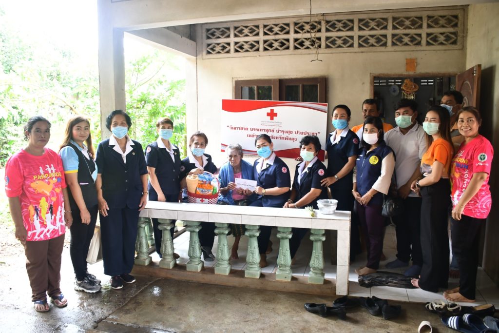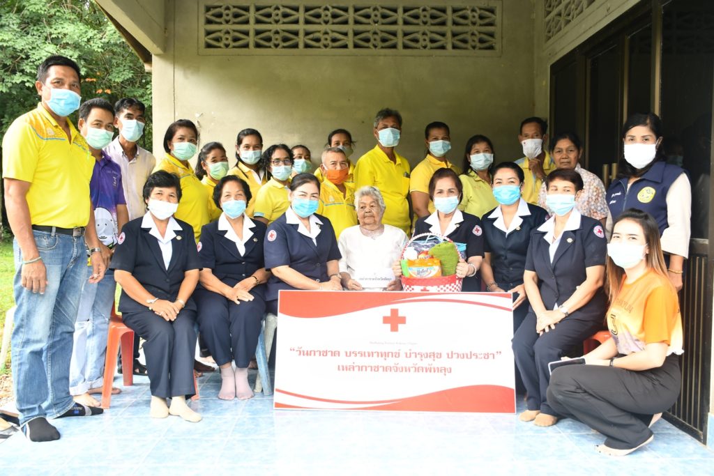 วันที่ 26 พฤศจิกายน 2563 นางมะลิ วงศ์กระพันธุ์ นายกเหล่ากาชาดจังหวัดพัทลุง มอบหมายให้กรรมการเหล่ากาชาดจังหวัดพัทลุง ร่วมกิจกรรม “วันกาชาด บรรเทาทุกข์ บำรุงสุข ปวงประชา” สัปดาห์ละ 1 ครั้ง โดยการเยี่ยมผู้สูงอายุที่มีอายุ 80 ปีขึ้นไป มาจากครัวเรือนตกเกณฑ์ จปฐ. หรือครอบครัวที่มีฐานะยากจนหรือด้อยโอกาส จำนวน 5 ราย ณ ตำบลฝาละมี อำเภอปากพะยูน จังหวัดพัทลุง จำนวน 5 ราย ดังนี้