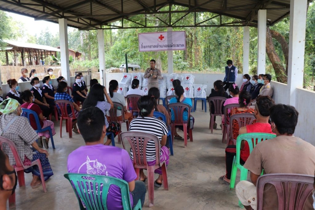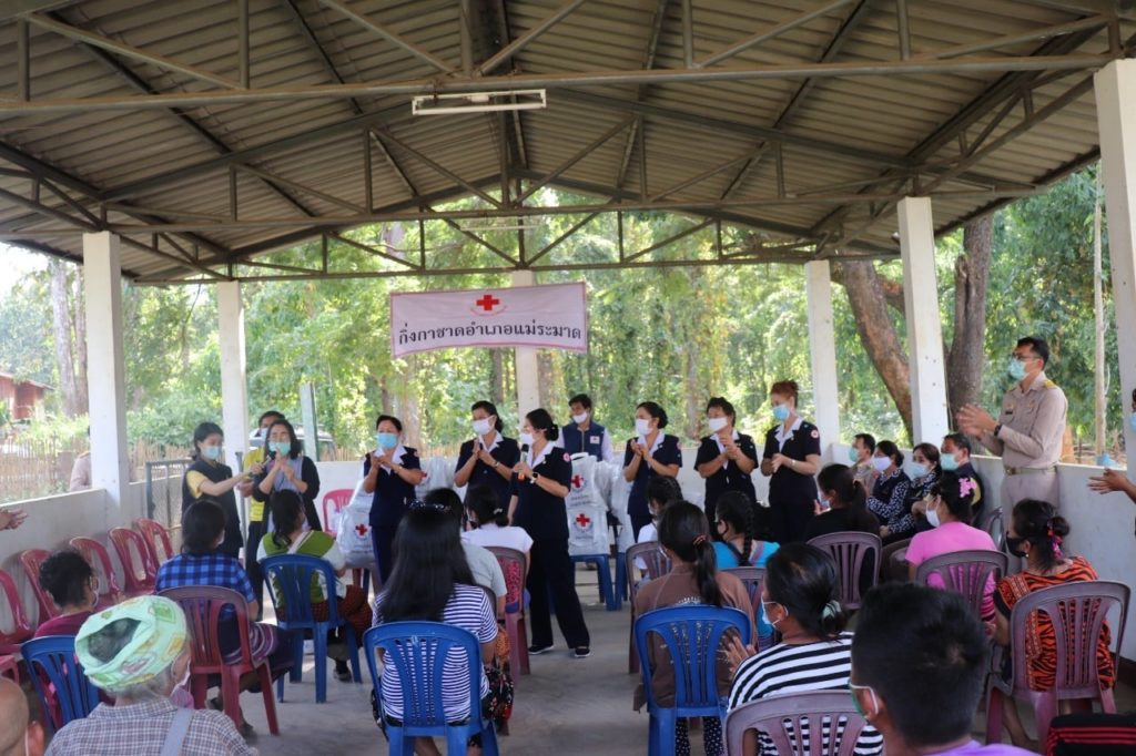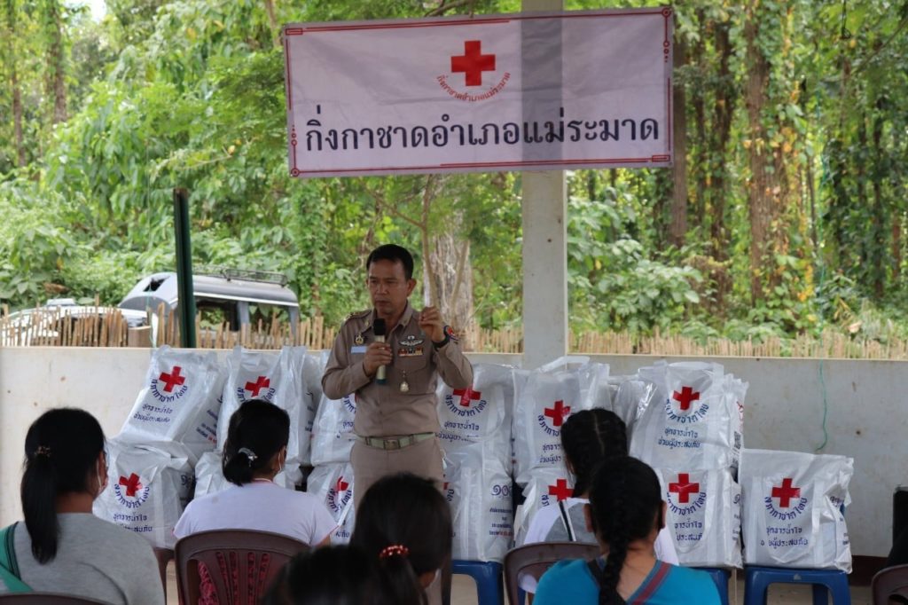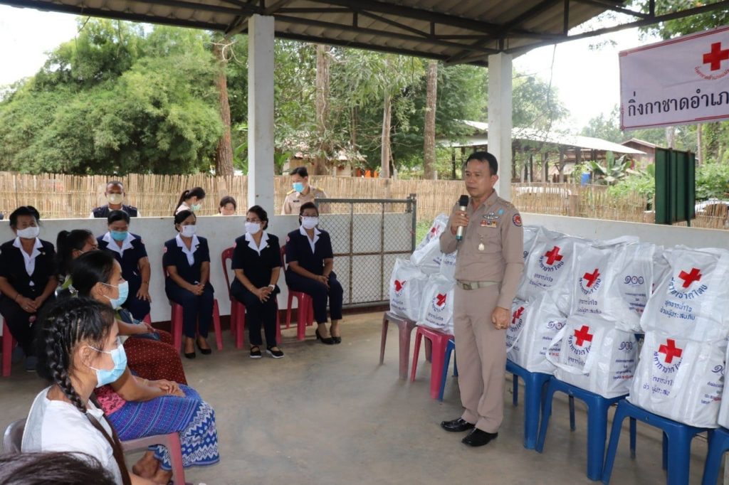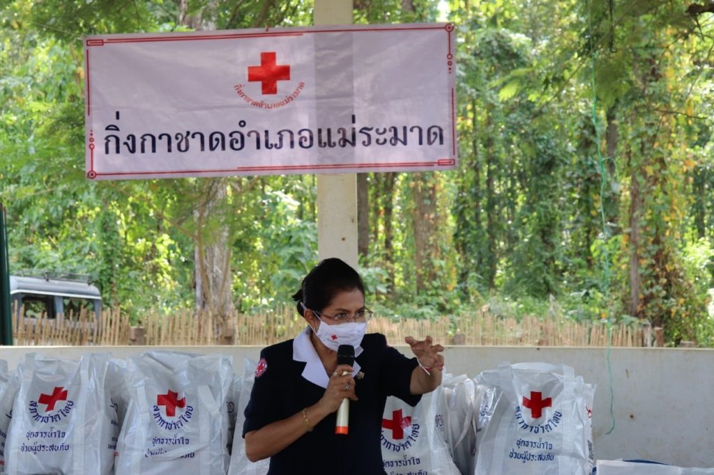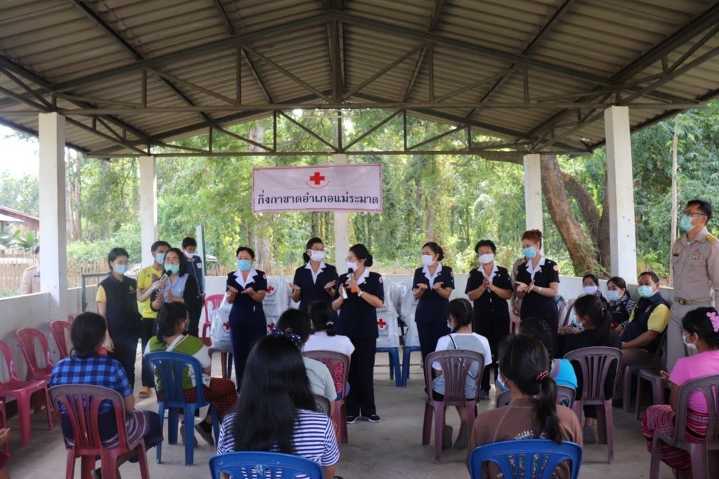 วันที่ 30 พฤศจิกายน 2563 นายพงศ์รัตน์ ภิรมย์รัตน์ ผู้ว่าราชการจังหวัดตาก ประธานที่ปรึกษาคณะกรรมการเหล่ากาชาดจังหวัดตาก พร้อมด้วย นางศลิษา ภิรมย์รัตน์ นายกเหล่ากาชาดจังหวัดตาก นางวรรณฤดี กิจเจริญรุ่งโรจน์ รองนายกเหล่ากาชาดจังหวัดตาก ร่วมมอบชุดธารน้ำใจให้แก่ผู้ได้รับผลกระทบจากการระบาดของเชื้อไวรัสโควิด-19 จำนวน 105 ราย ณ อำเภอแม่ระมาด โดยมี นายเลิศศักดิ์ ทับผึ้ง นายอำเภอแม่ระมาด นางโสภา ทับผึ้ง นายกกิ่งกาชาดอำเภอแม่ระมาด และกรรมการ/สมาชิกกิ่งกาชาดอำเภอแม่ระมาด ให้การต้อนรับและร่วมกิจกรรม
